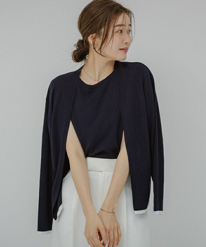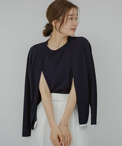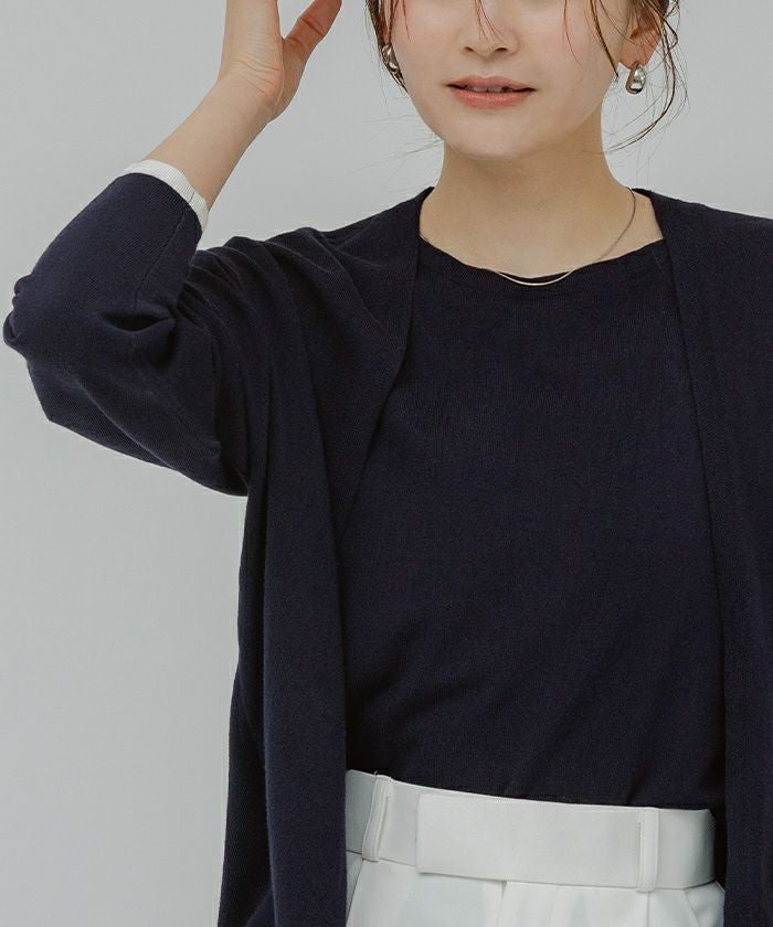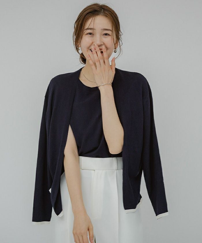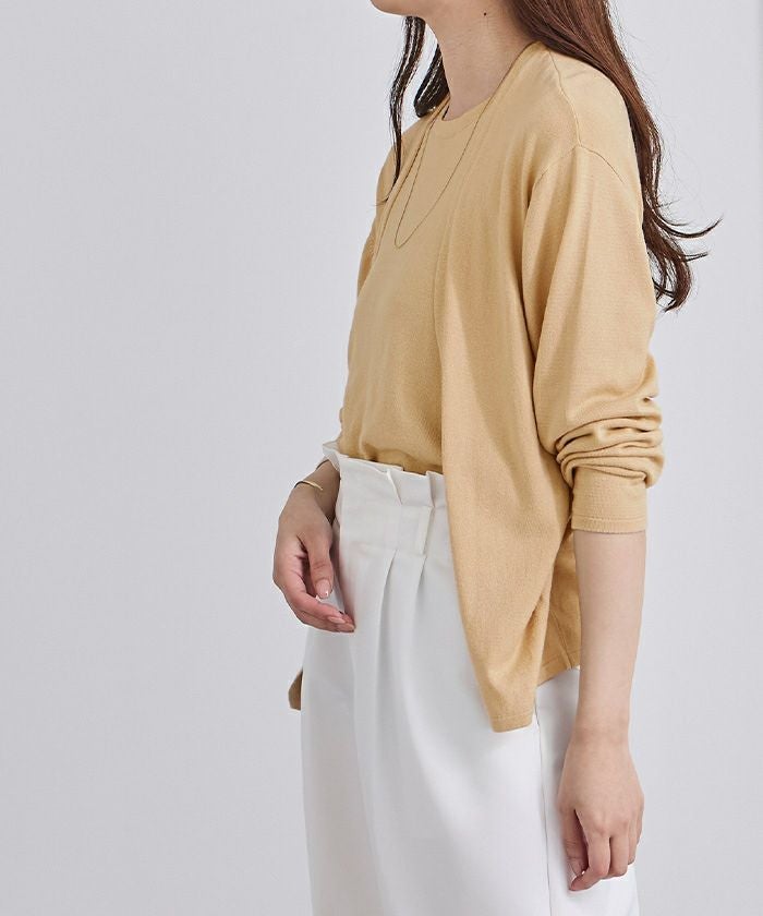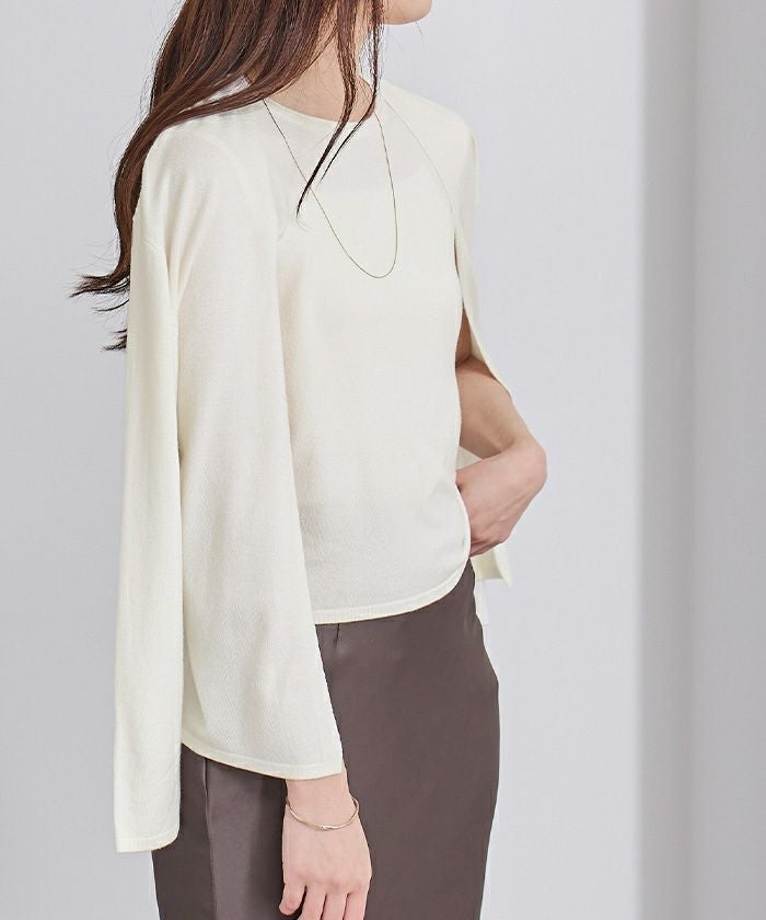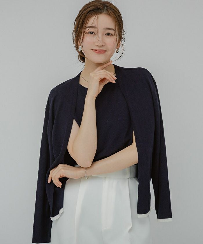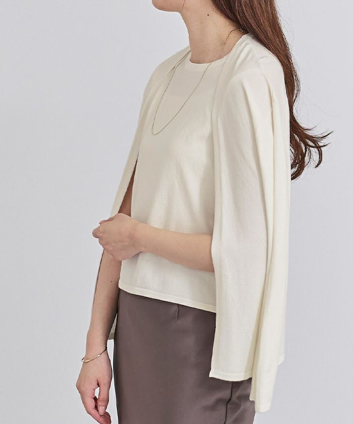 肩掛け風に着る場合は袖を抜いて着用と2パターンのスタイリングをお楽しみ頂けます。