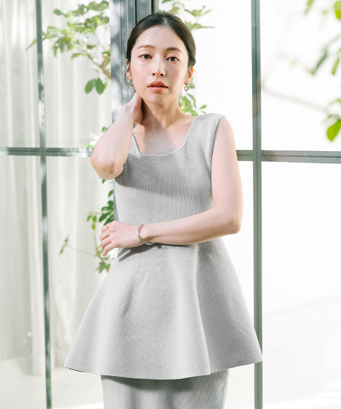 前後2wayスポンディッシュスクエアネックペプラムニット