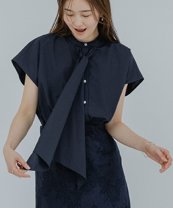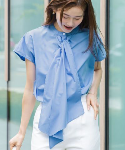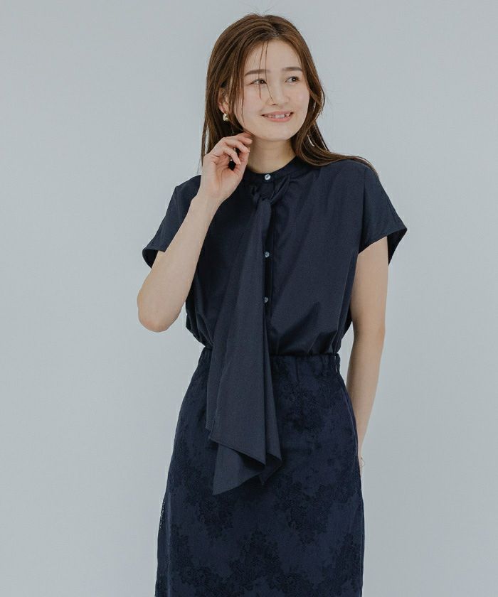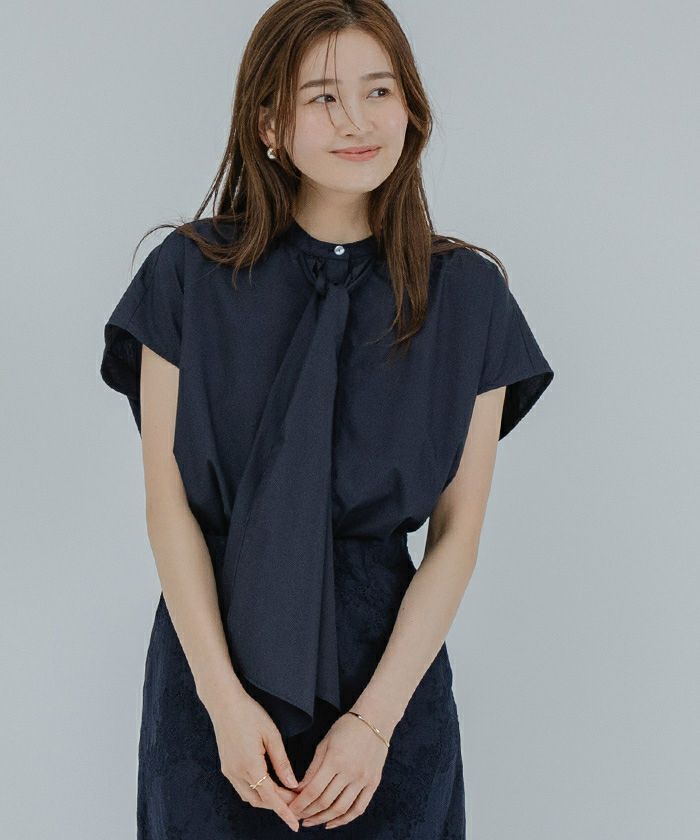 結ばなくてもおしゃれに着られるボウタイブラウス。