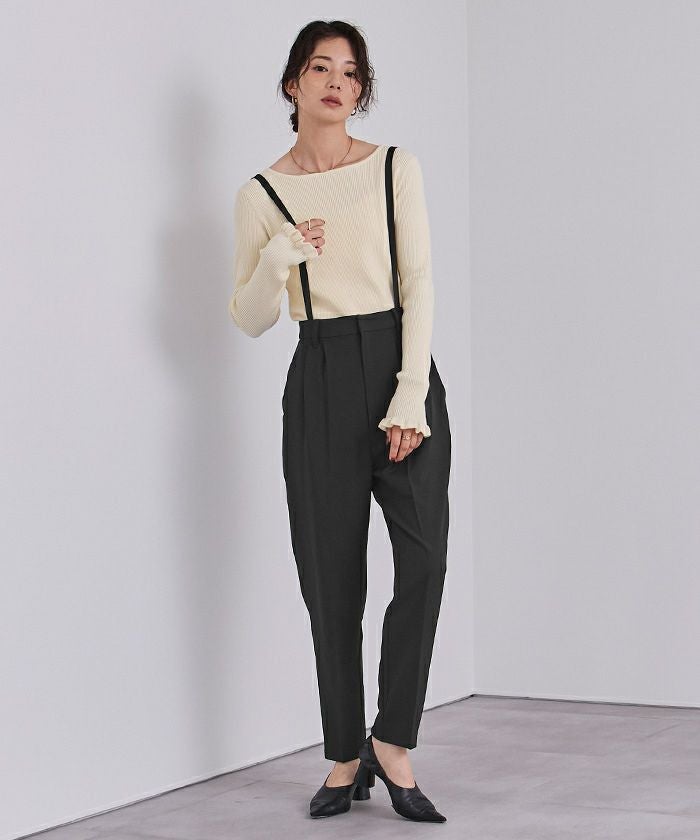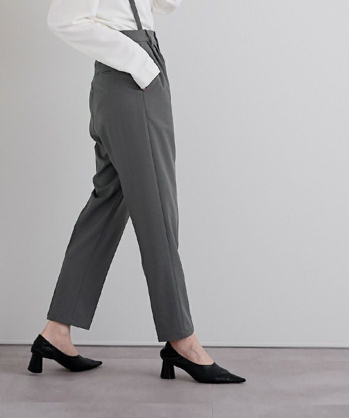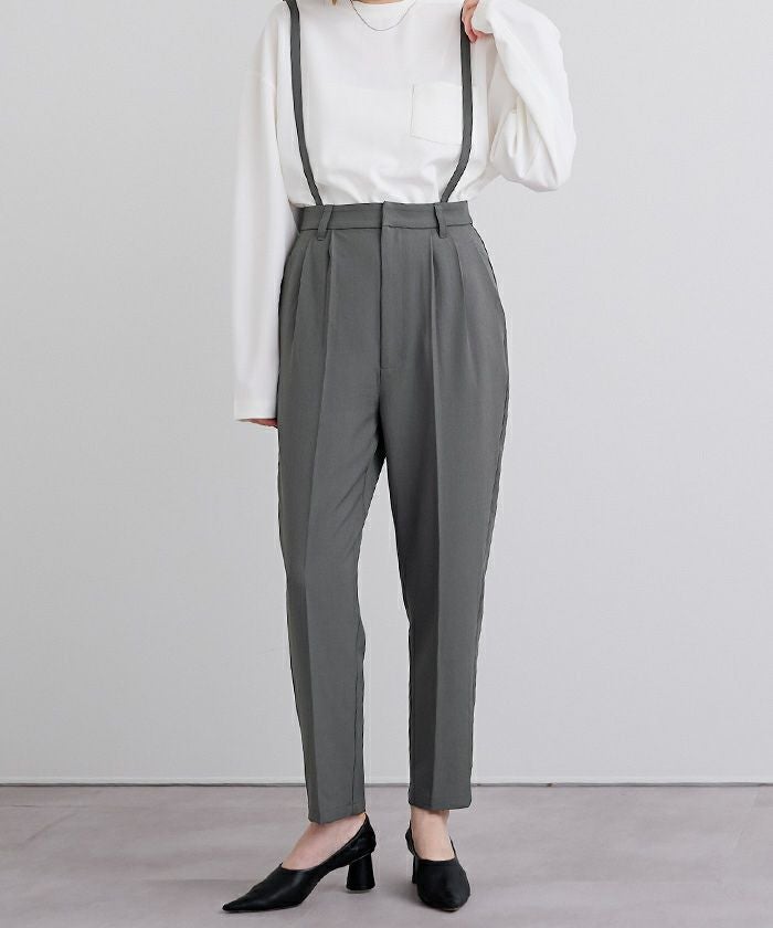 テーパードシルエットでスタイルアップも叶えられるサロペットパンツ。