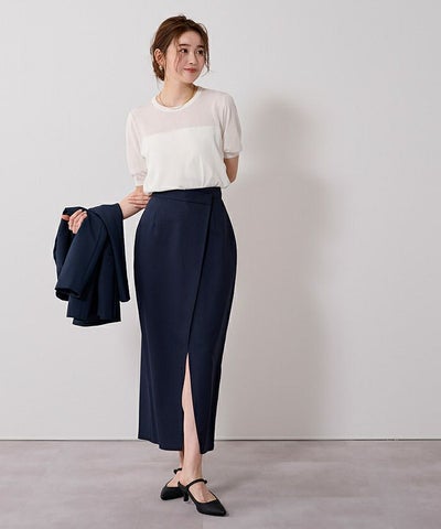 シンプルで洗礼されたシアー感のクルーネックニット。