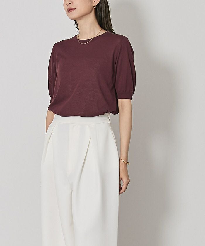 クルーネックハーフスリーブシアーニット【メール便可/100】