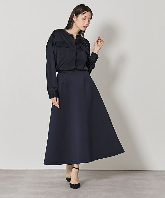 ほどよい落ち感と微光沢のある素材を使用し、肌に優しくなじむソフトな風合いが魅力。