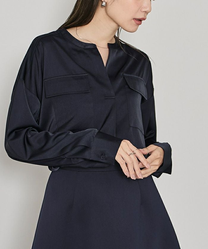 ダブルポケットスキッパーブラウス【メール便可/100】