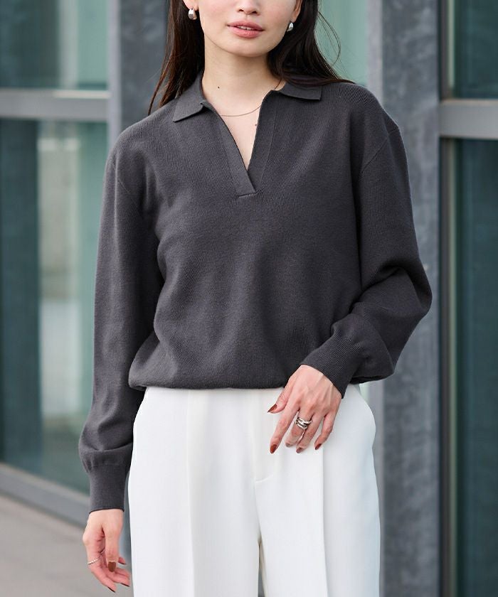 スキッパーデザインニット