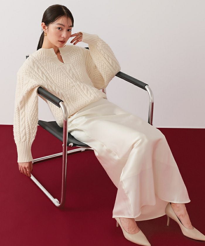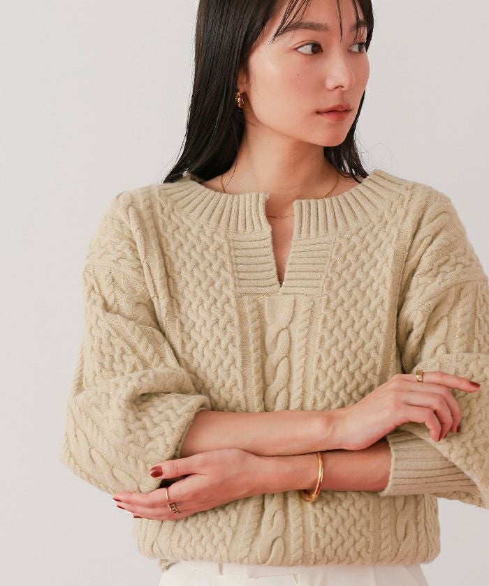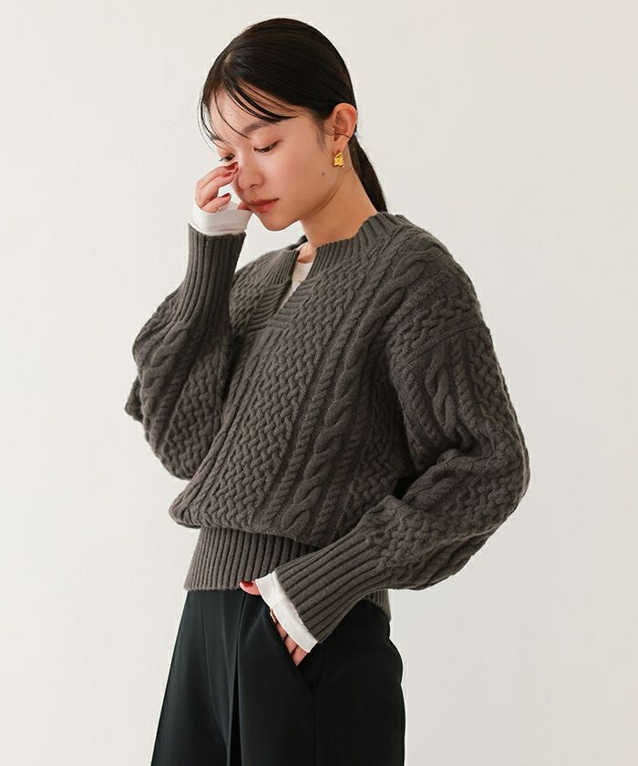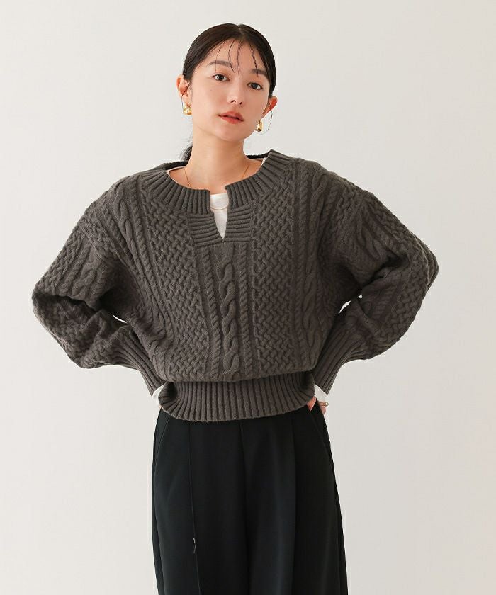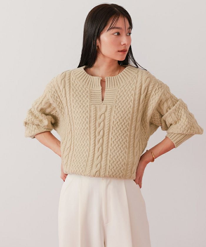 キーネックケーブルニット