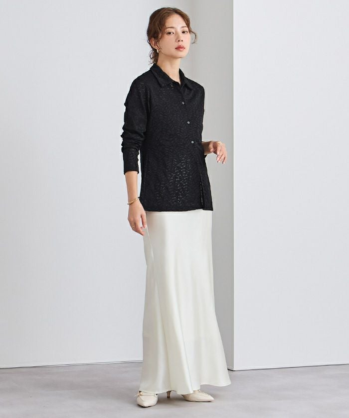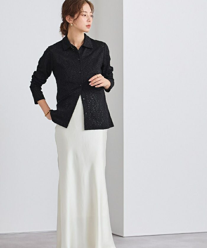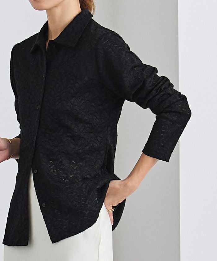 レース素材で仕立てたポロシャツ。