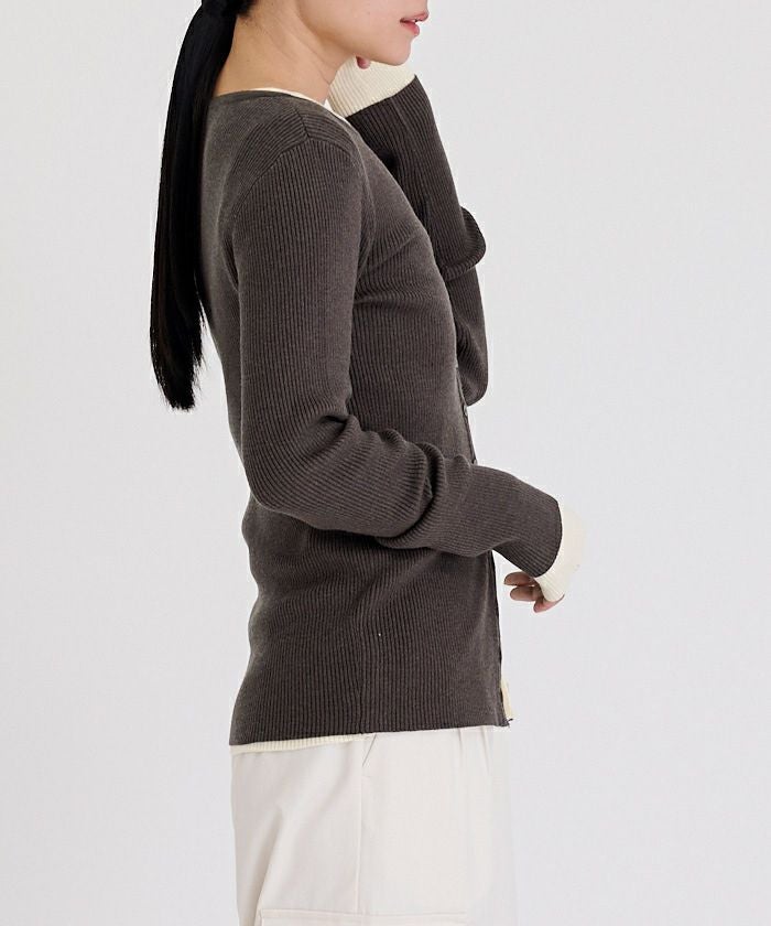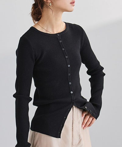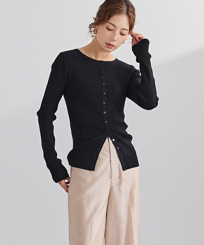 メニー釦リブニットカーディガン