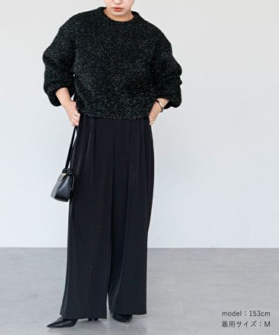 光に透けてきらめく素材が上品なクロップド丈ニットです。