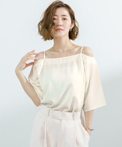 トレンドムードのオフショルデザインを大人可愛く仕上げました。