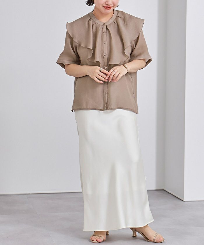 バンドカラータックラッフルブラウス【メール便可/100】