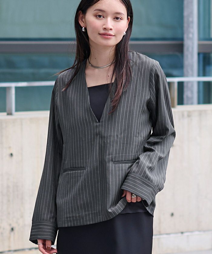 深めのVネックデザインで抜け感が出る大人のブラウスです。