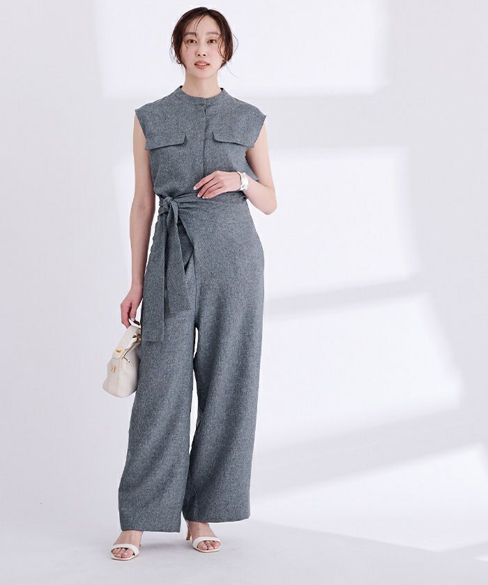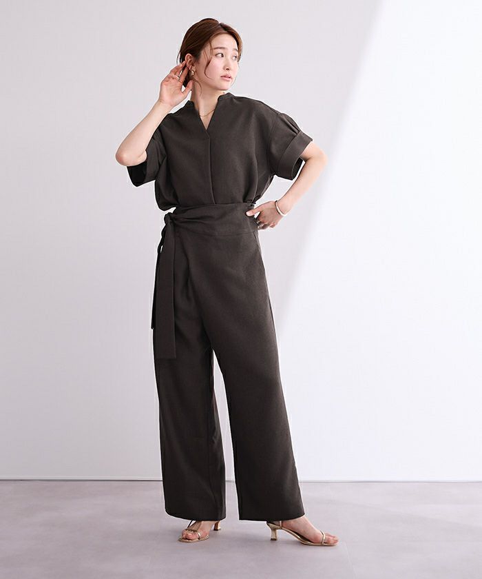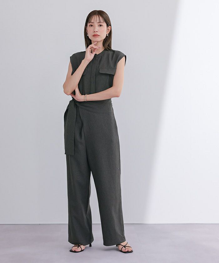 リネンライクヘンリーネックオールインワン