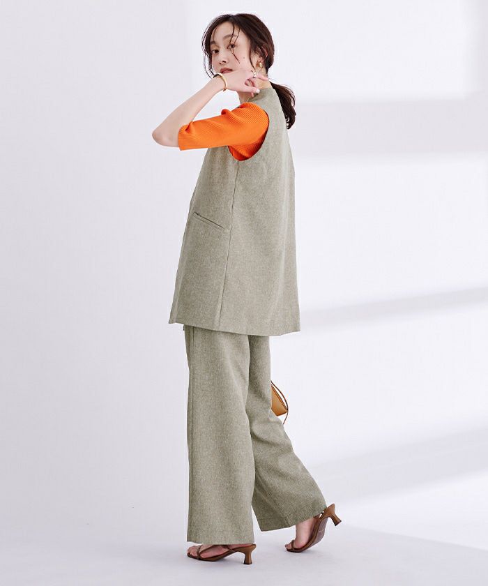 リネンライクVネックノーカラージレ