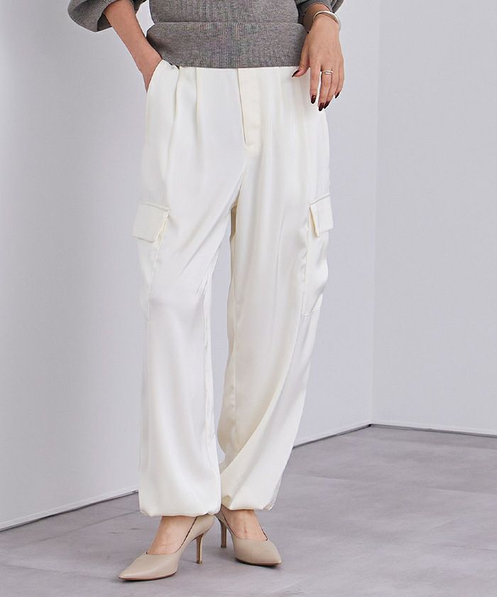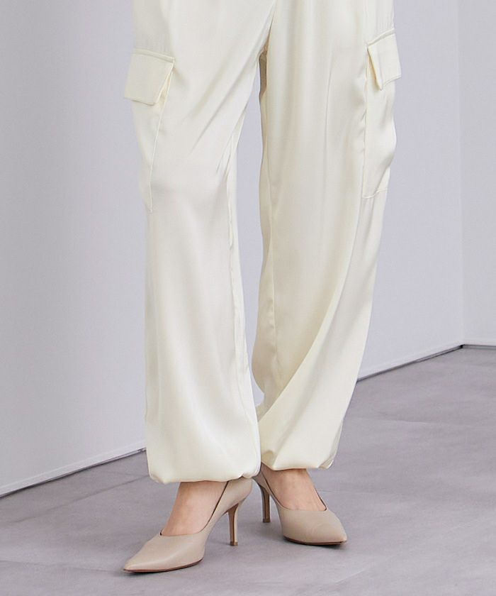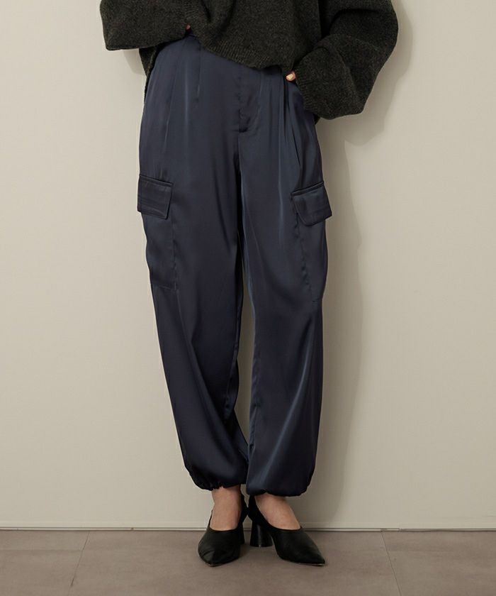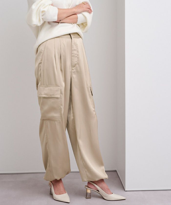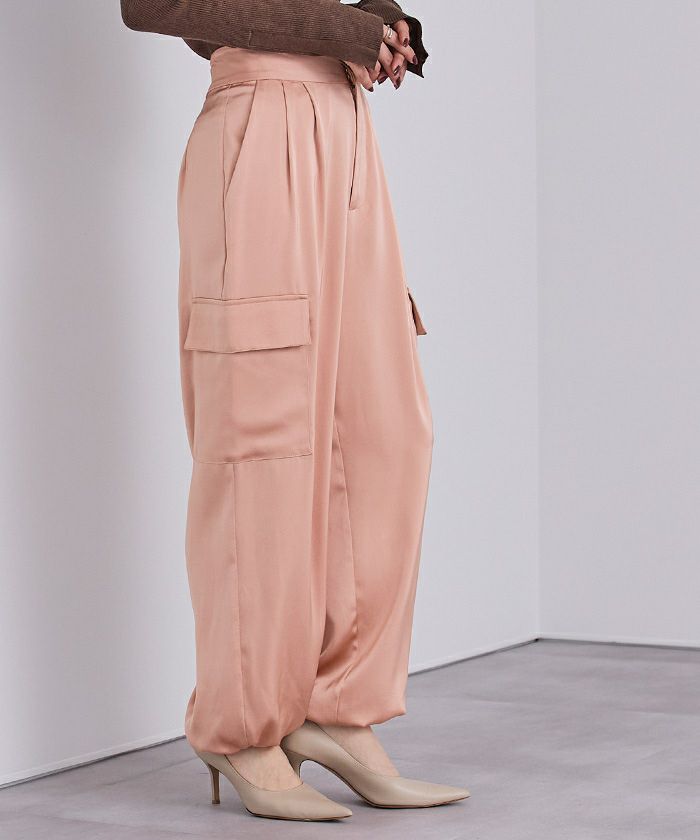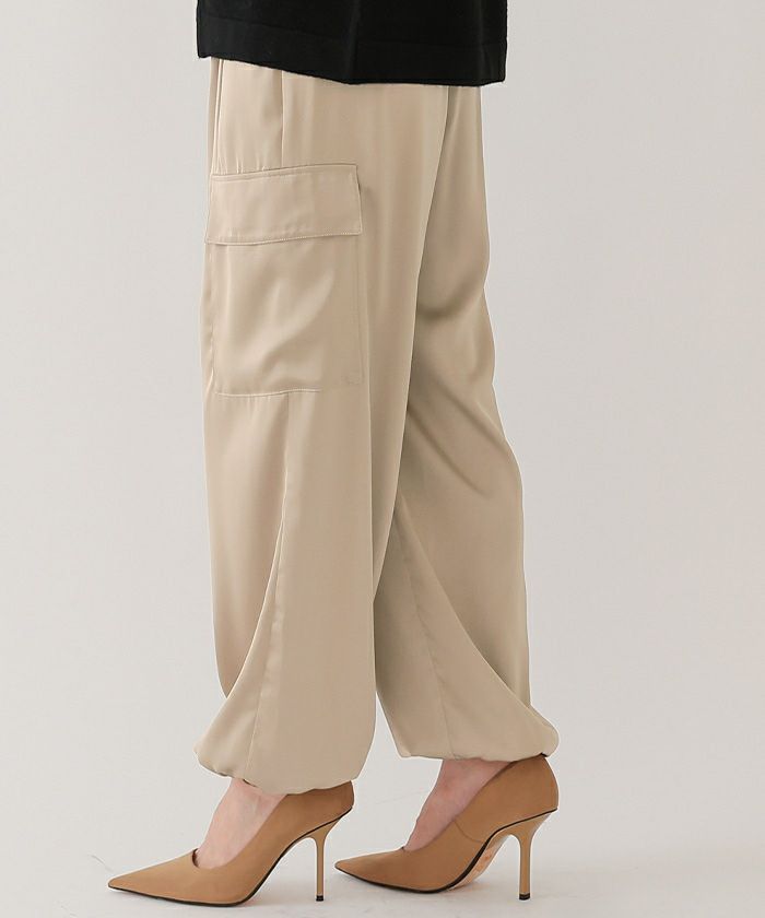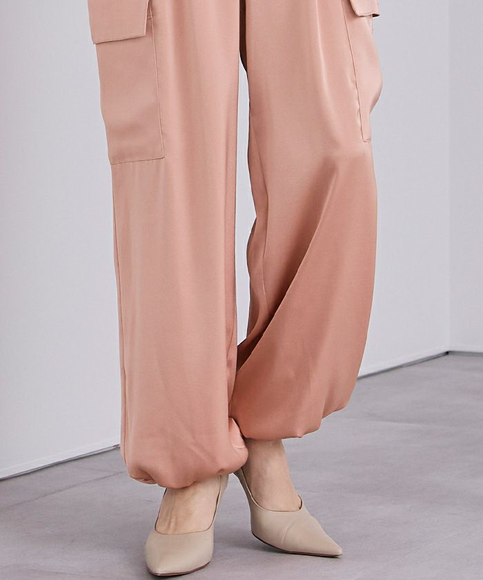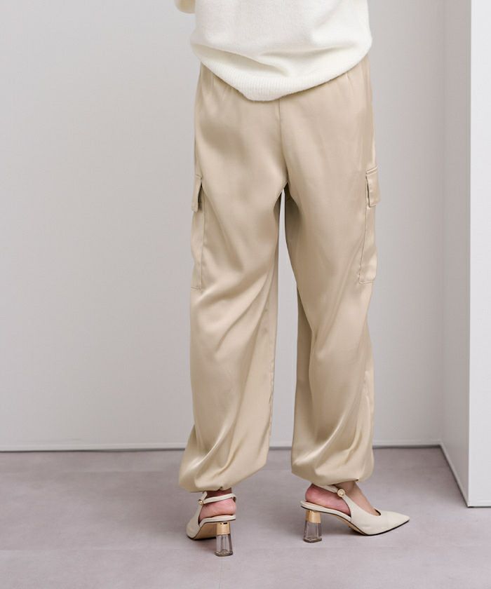 トレンドのパラシュートパンツをサテンの生地で上品に仕上げました。