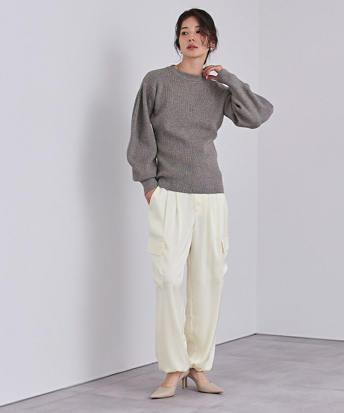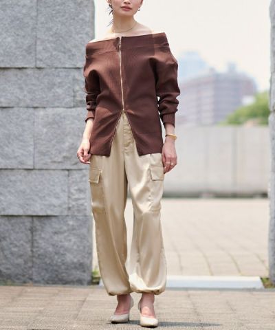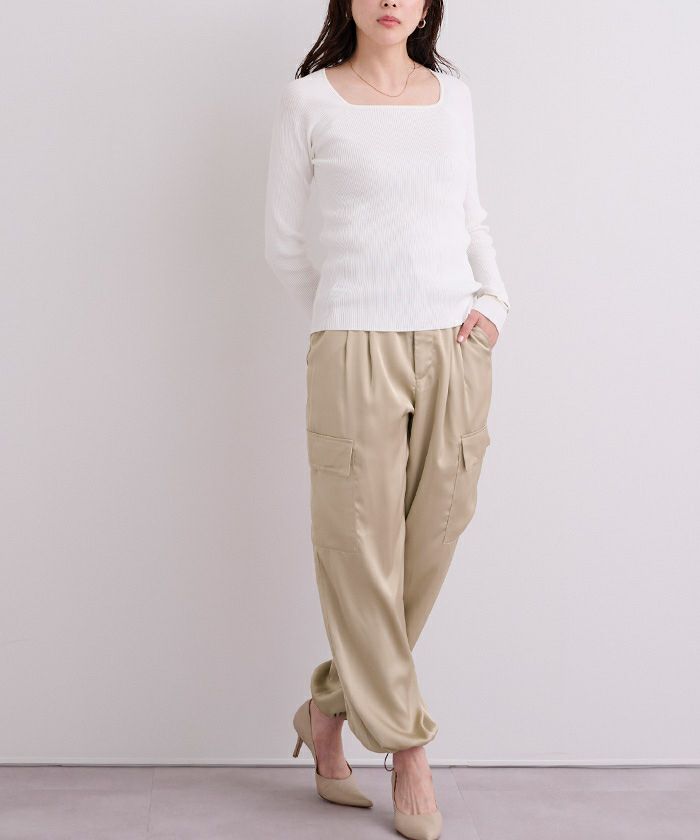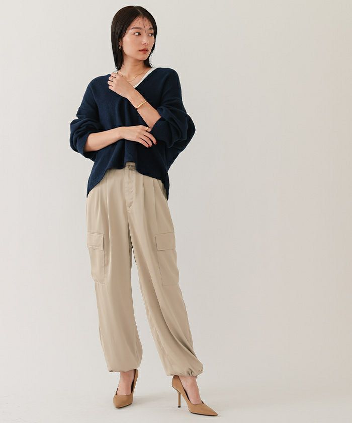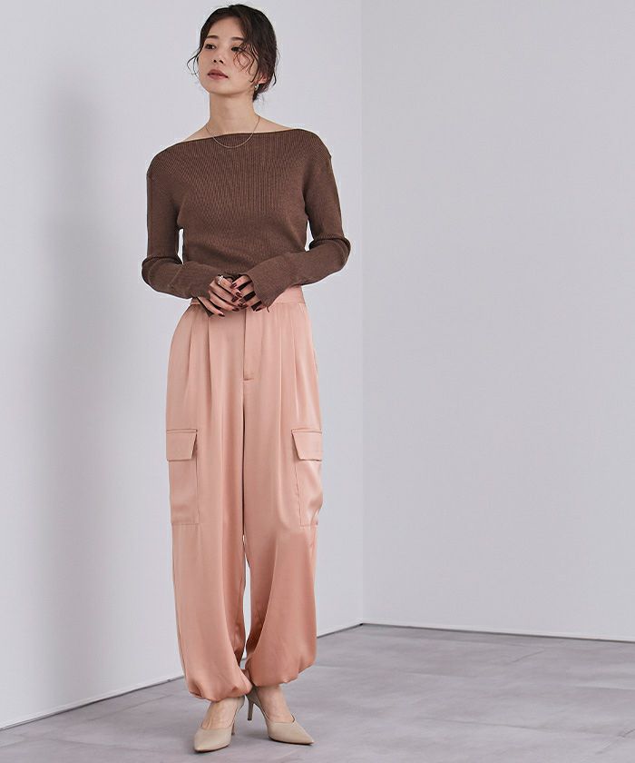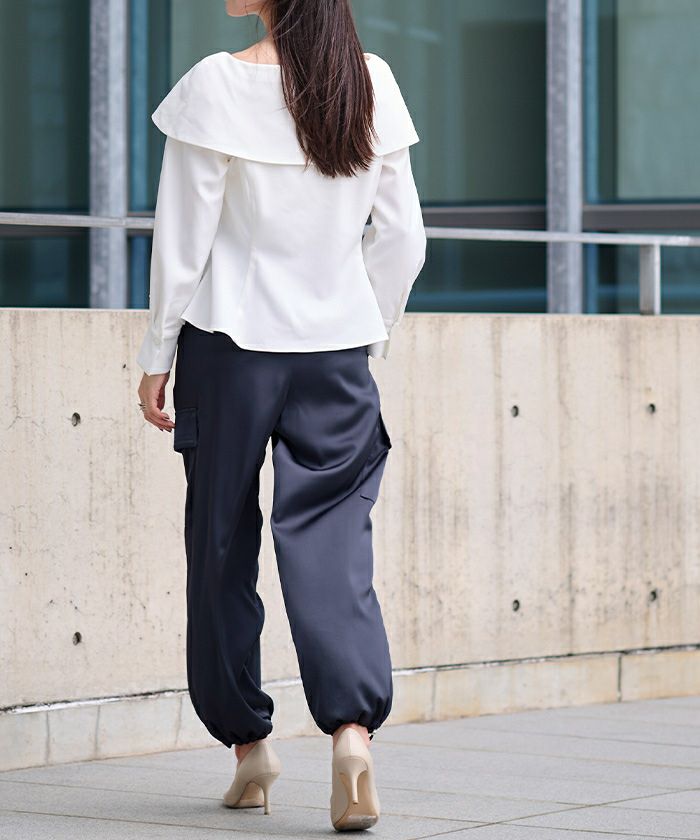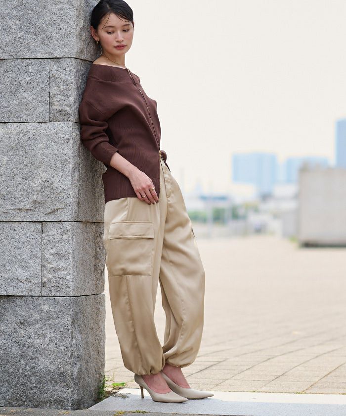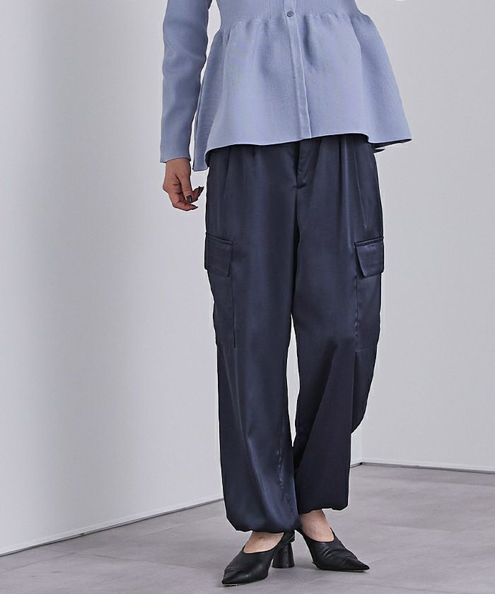 トレンドのパラシュートパンツをサテンの生地で上品に仕上げました。