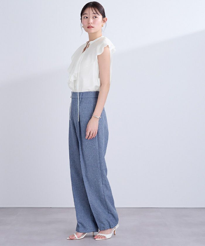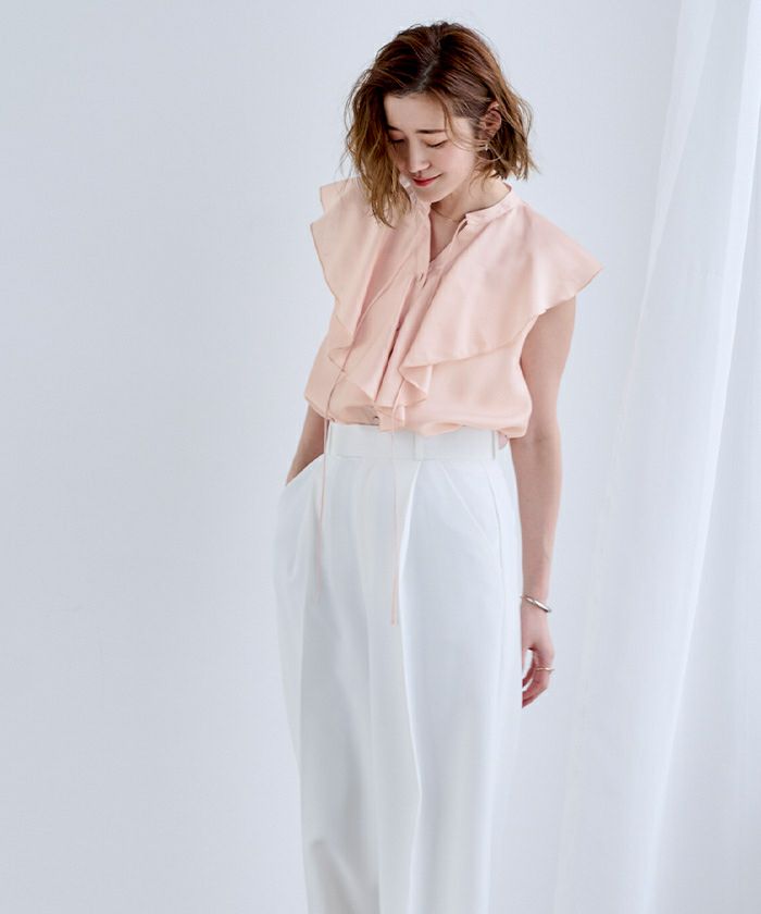 ラッフルのフリルを既存のブラウスより少し長くして華やかな印象に◎