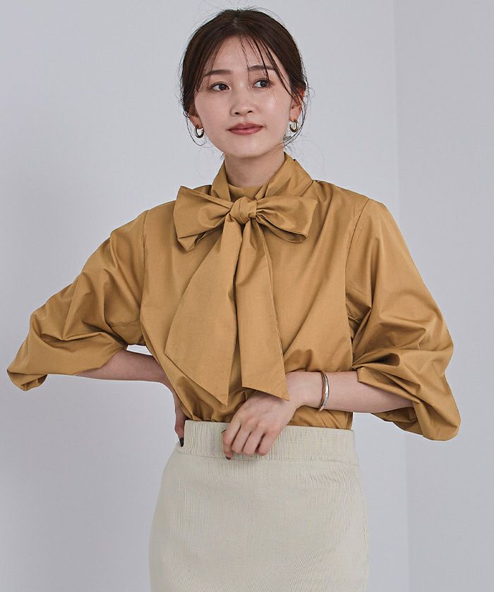 程良くボリューム感のあるブラウスなので、細身のパンツやタイトスカートとの相性も抜群。