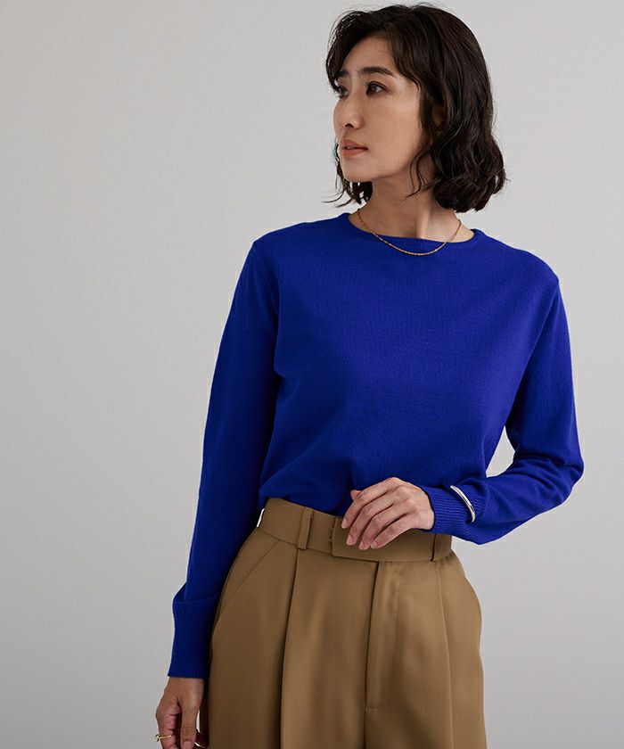 肌触りがよい生地でサイズ感もちょうどよく使い回ししやすいニット、色鮮やかなブルーが素敵です。