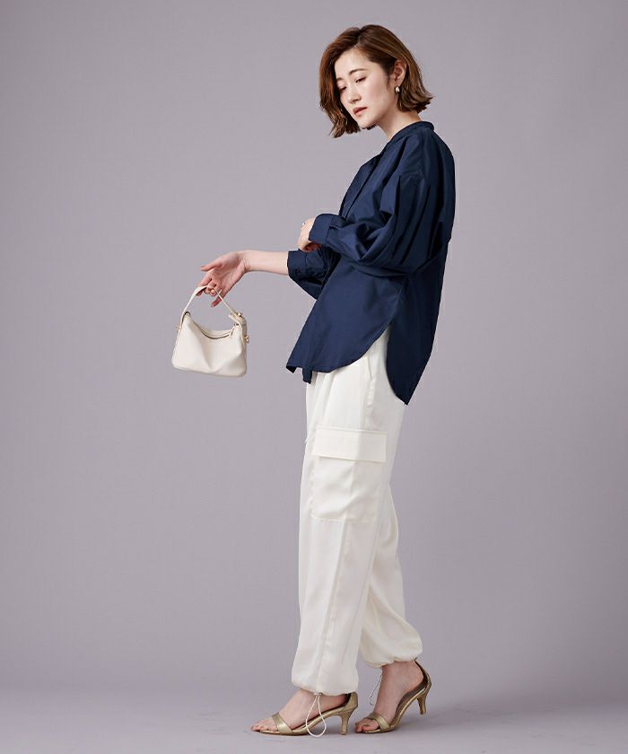 袖をブラウジングして着用すれば、よりボリューム感が際立ちワンポイントに。