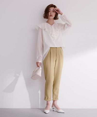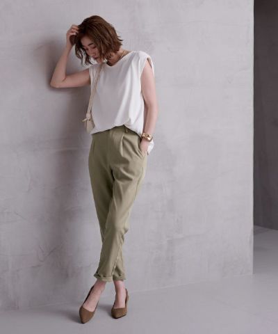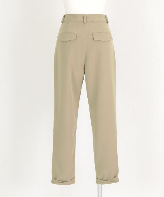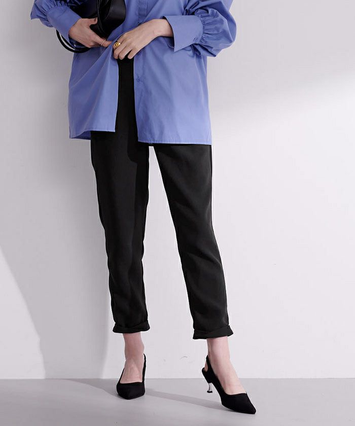 すっきりとしたラインのテーパードパンツ。