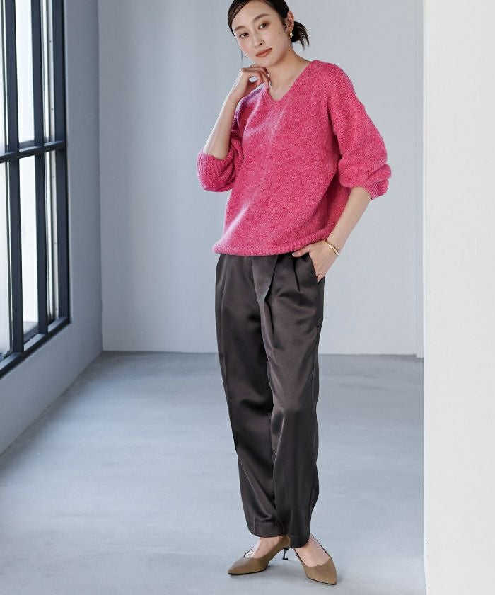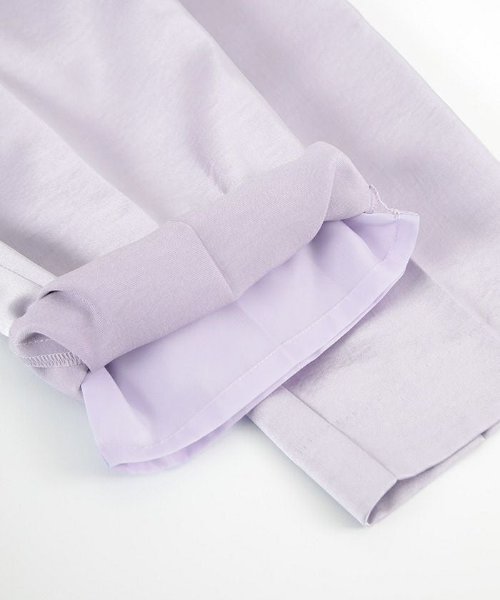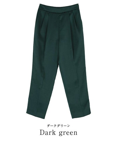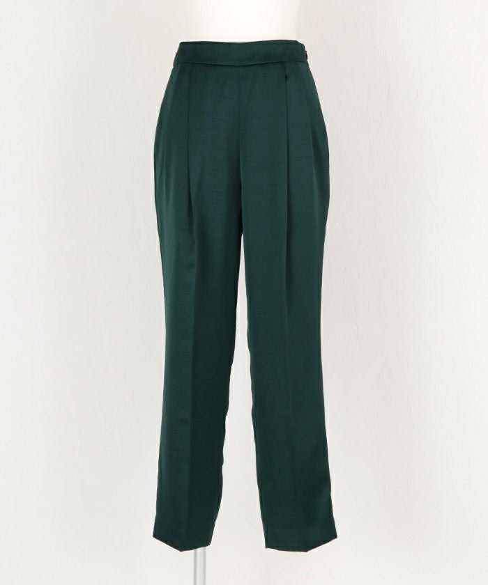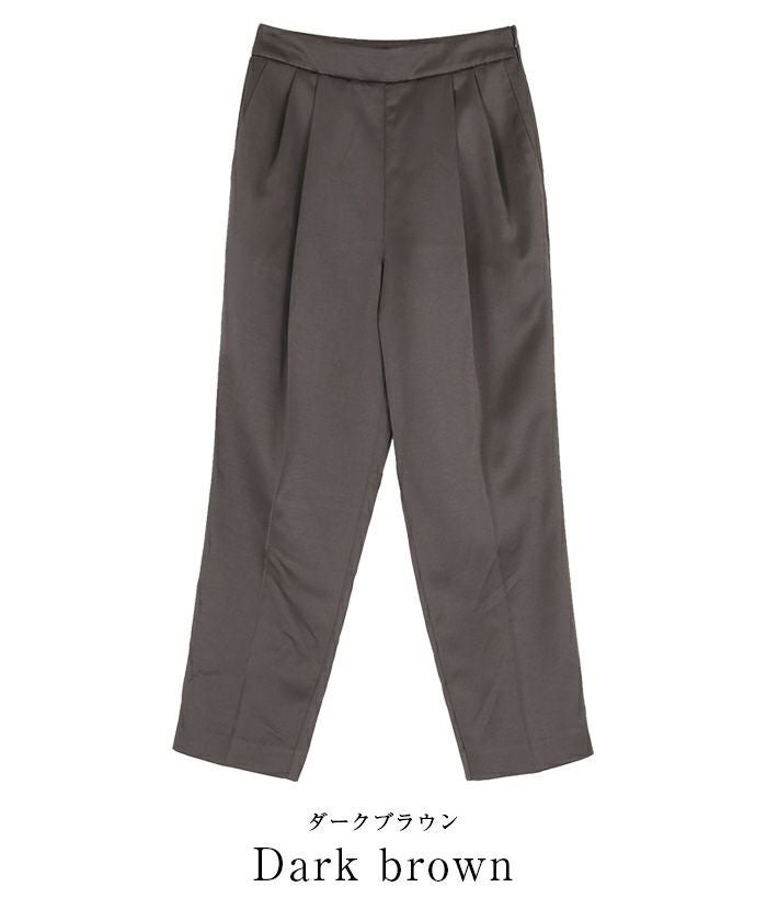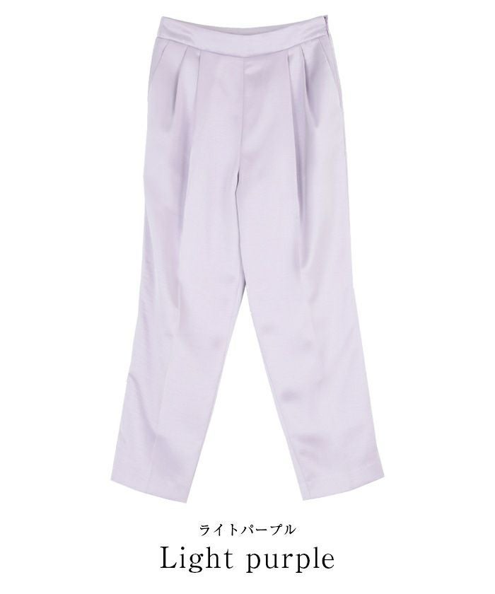 上品な光沢のサテン素材でトレンド感抜群なテーパードパンツ。