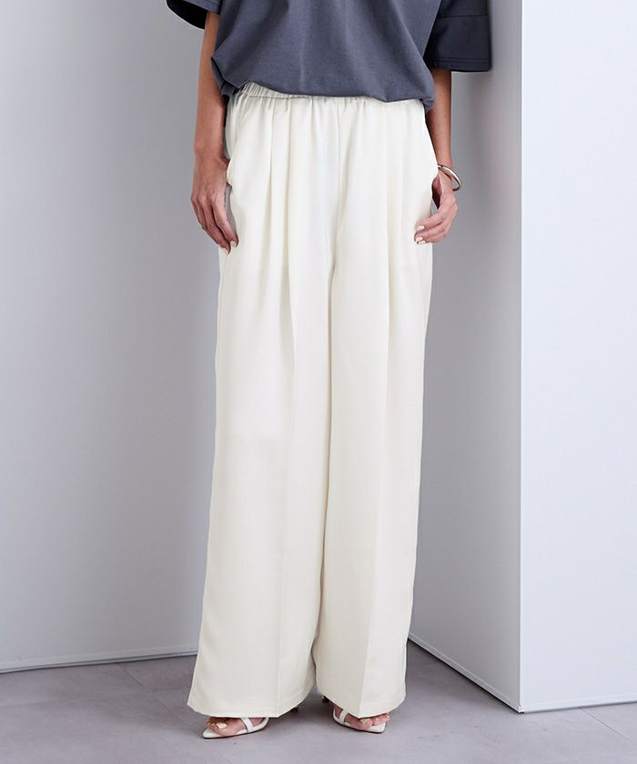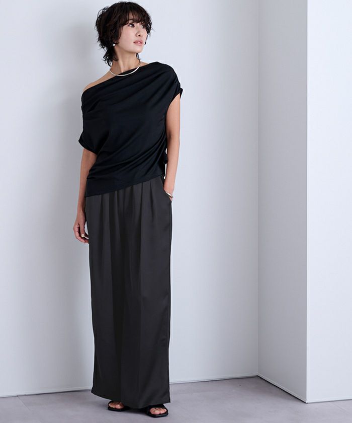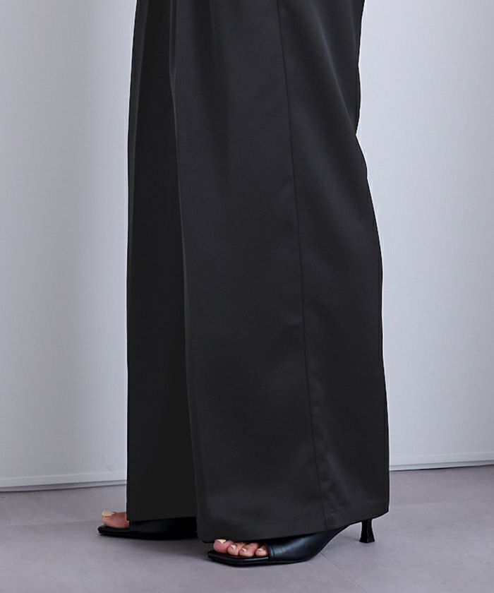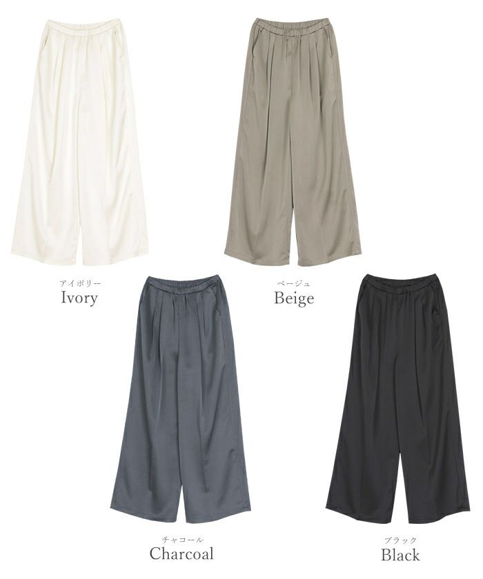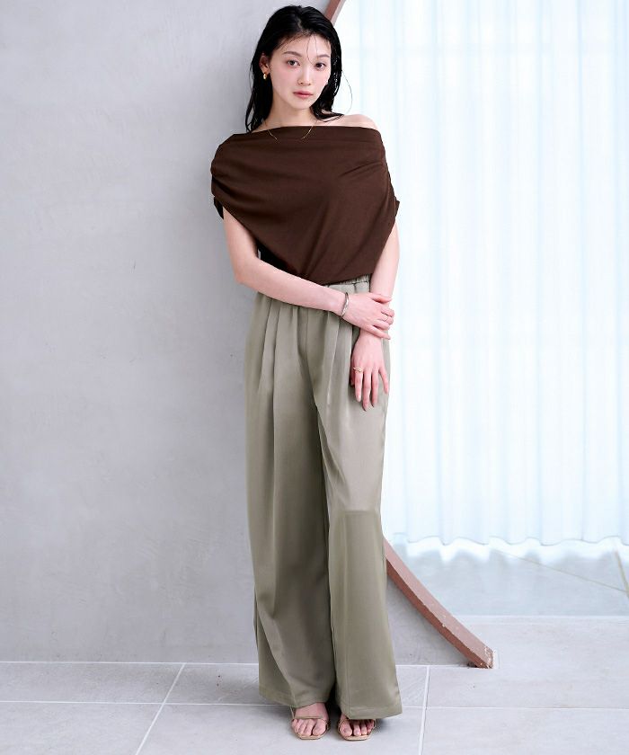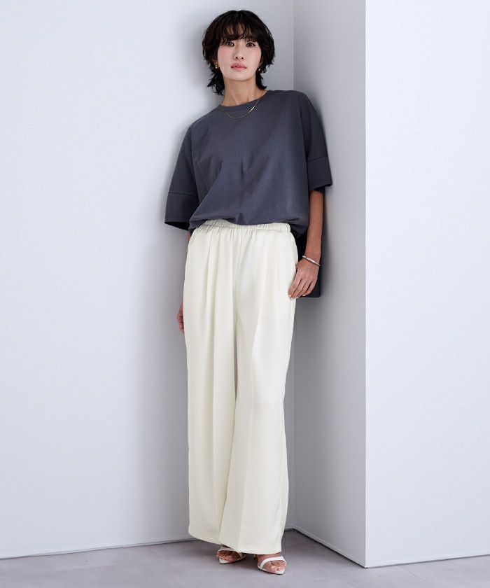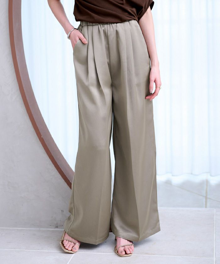 上品な光沢感のある素材を使用した、イージーワイドパンツ。