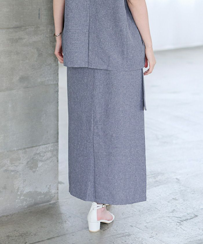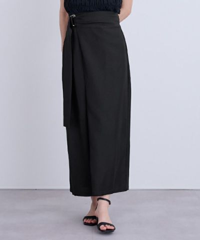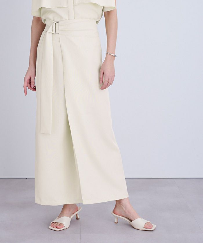夏にうれしい機能性を備えた〈シャーベットリネンライク〉生地で仕上げた、ラップ調デザインのスカート。