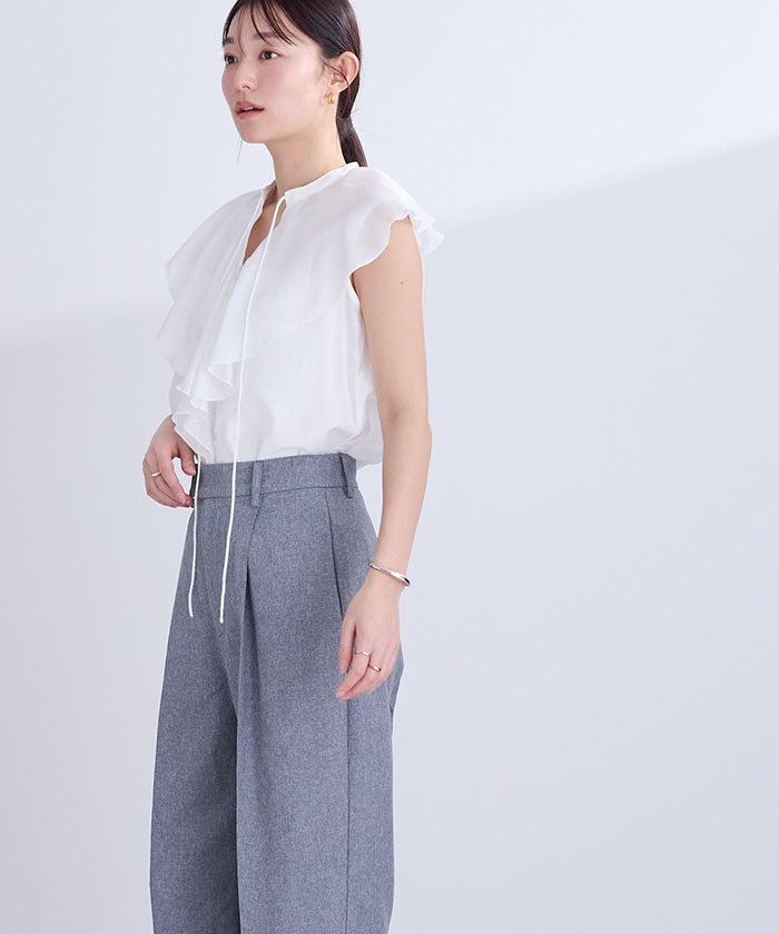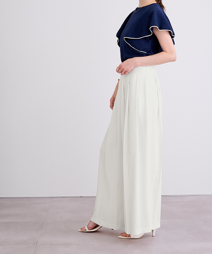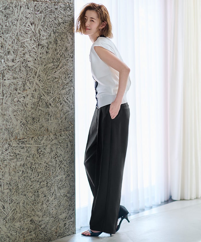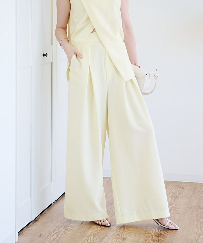 他の画像を見る 【小林有里さんコラボアイテム】【高身長さん向けサイズ有り】【期間限定★SALE】 ピンタックセンタープレスワイドパンツ 定価 ¥ 7,689 のところ 価格 ¥ 6,920 税込 お気に入りに登録する