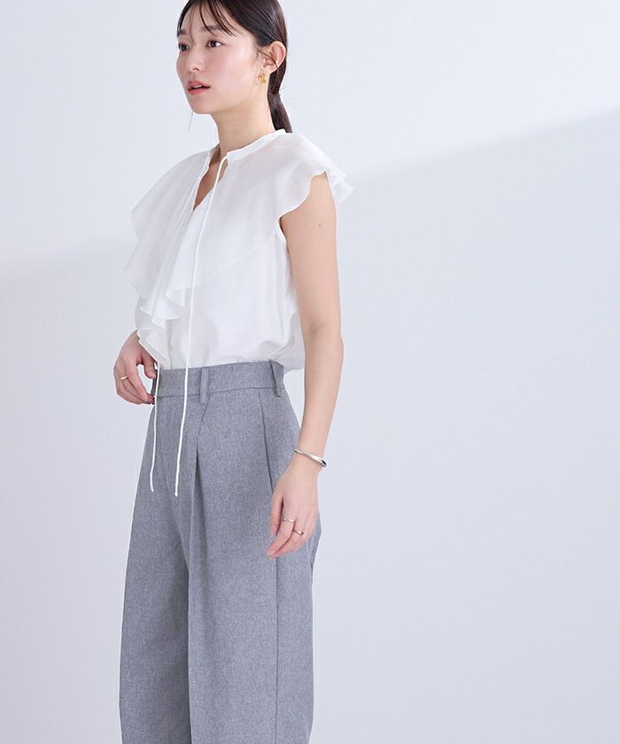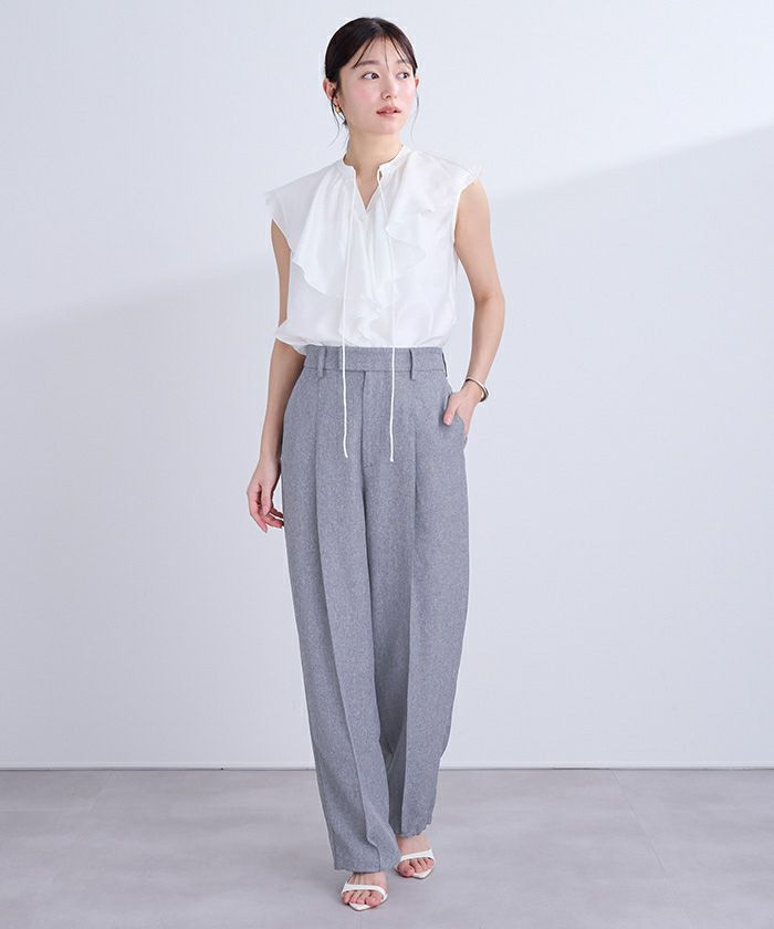 他の画像を見る 【小林有里さんコラボアイテム】【高身長さん向けサイズ有り】【期間限定★SALE】 ピンタックセンタープレスワイドパンツ 定価 ¥ 7,689 のところ 価格 ¥ 6,688 税込 お気に入りに登録する