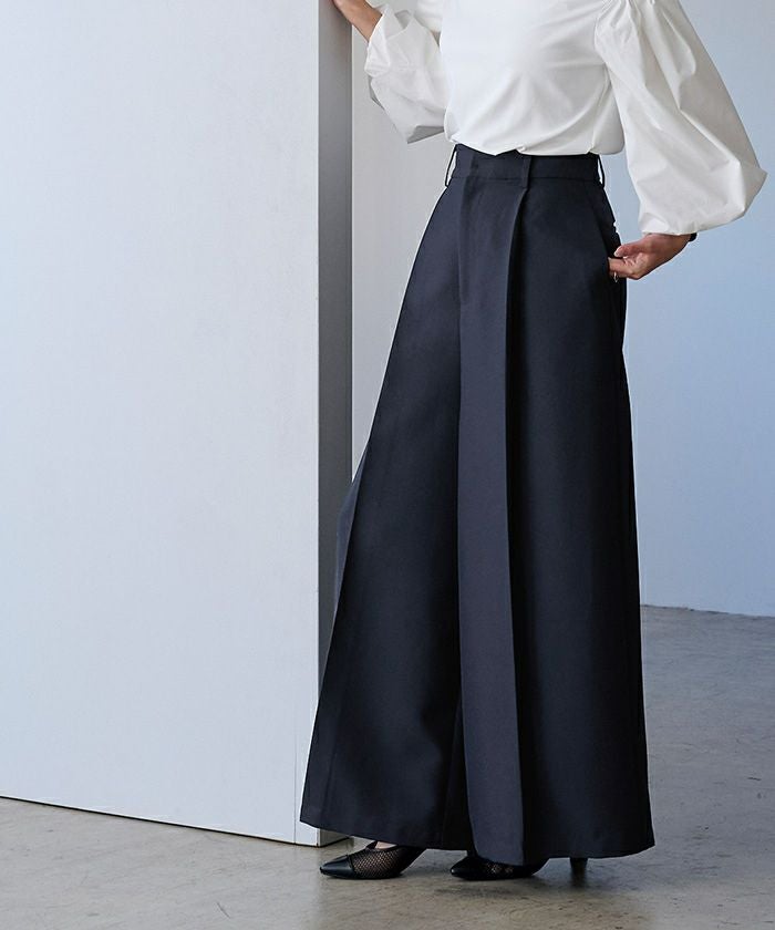サテンギャザーワイドパンツ