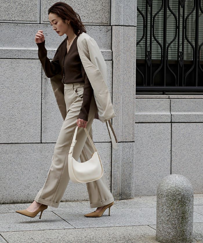ベルトデザインワンタックワイドパンツ