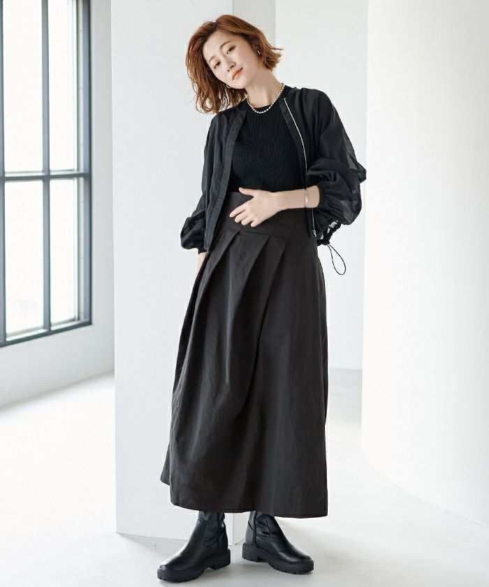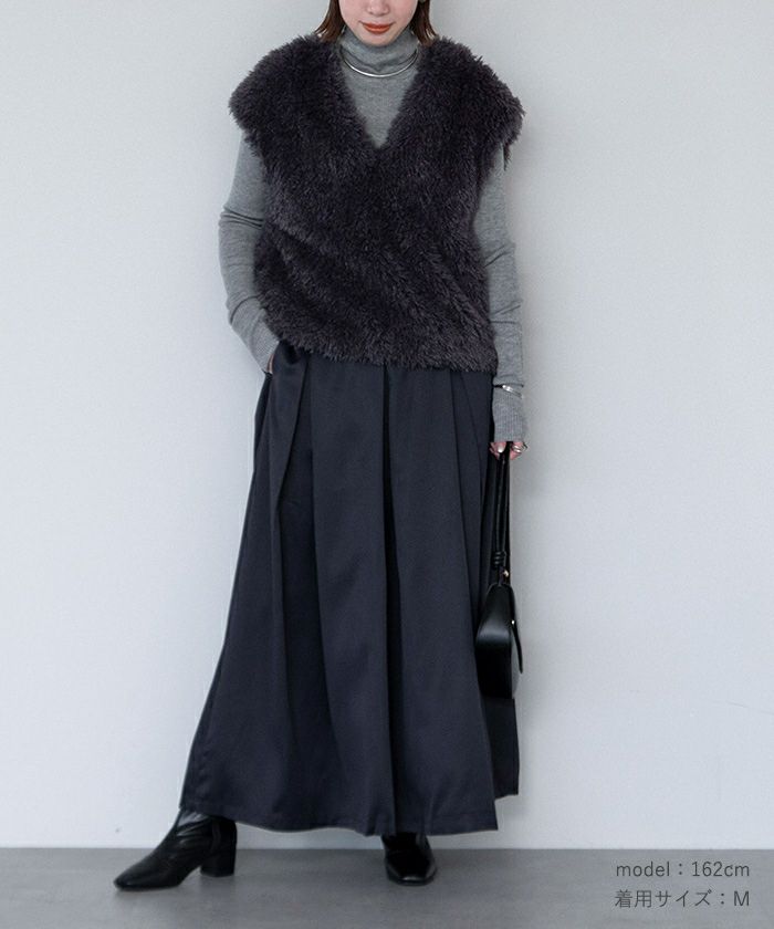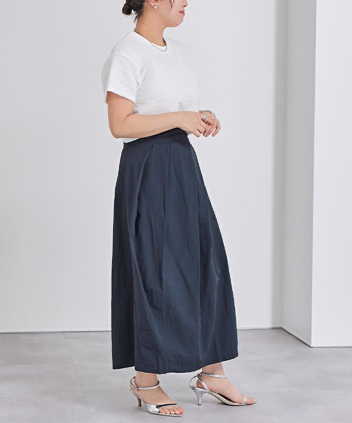 フェイクスエードマキシ丈タックスカート