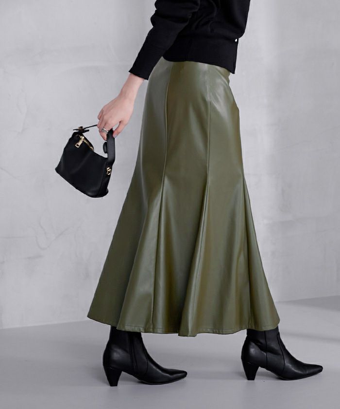 フェイクレザーパネルマーメイドスカート