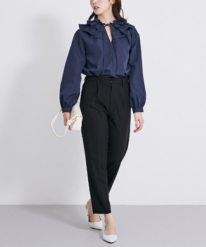 ウールライクツイルセンタープレステーパードパンツ