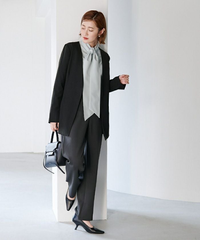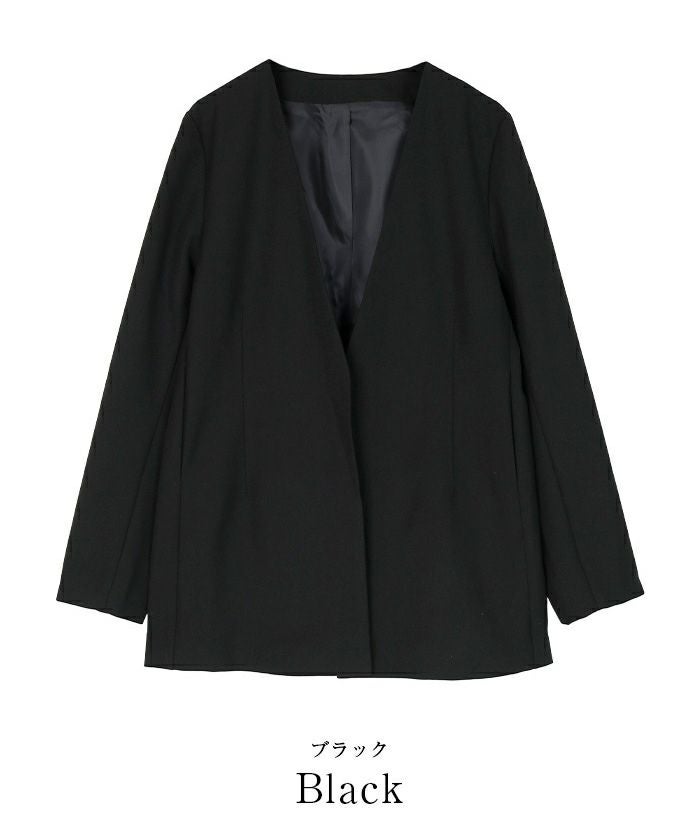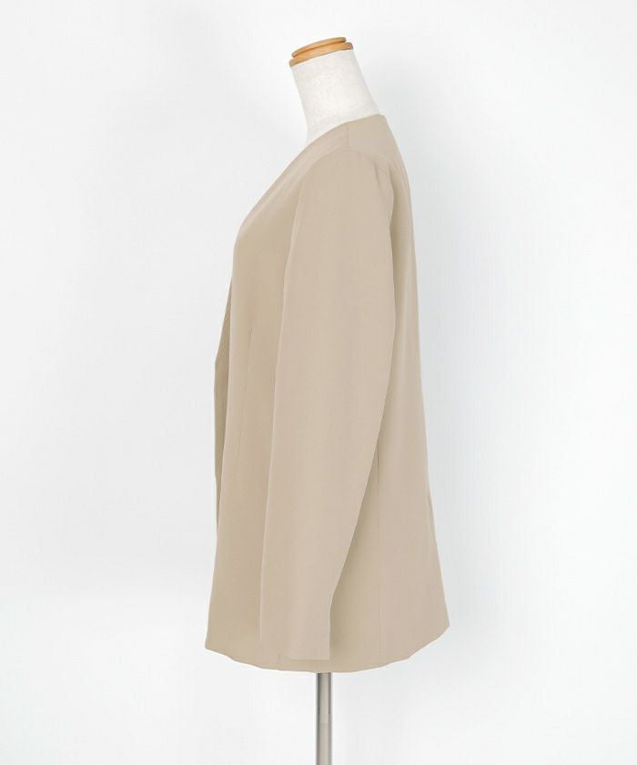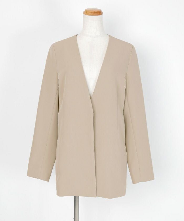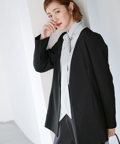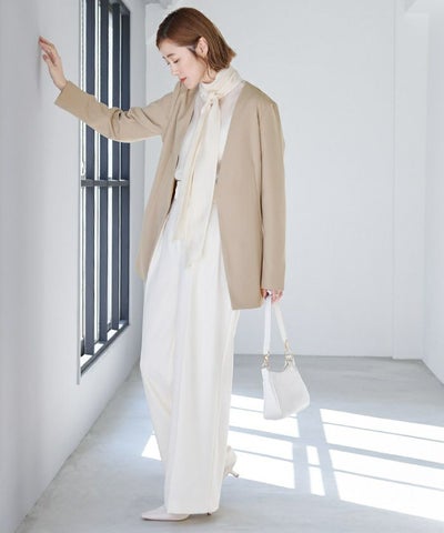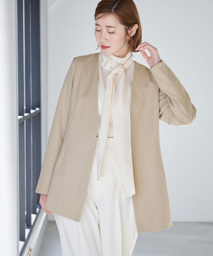 ノーカラーなので胸元からお腹辺りまですっきりと綺麗にきまる一枚です。