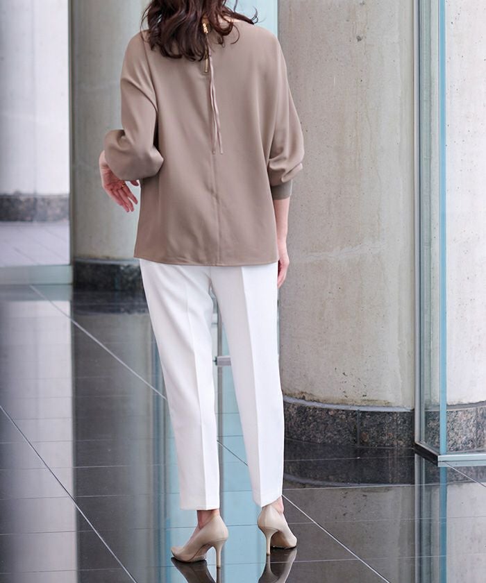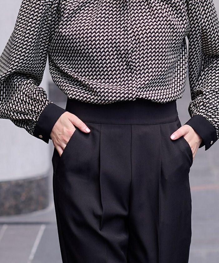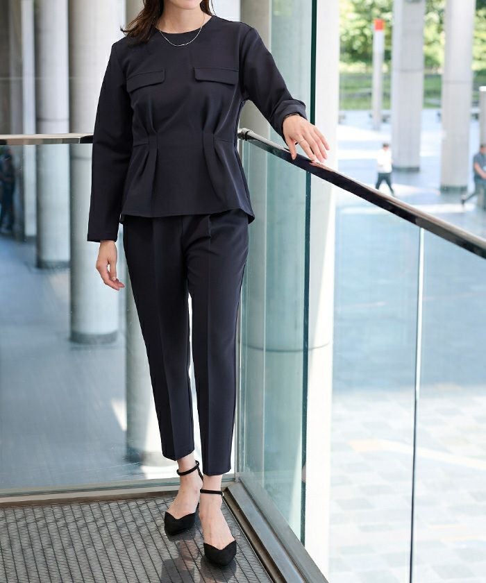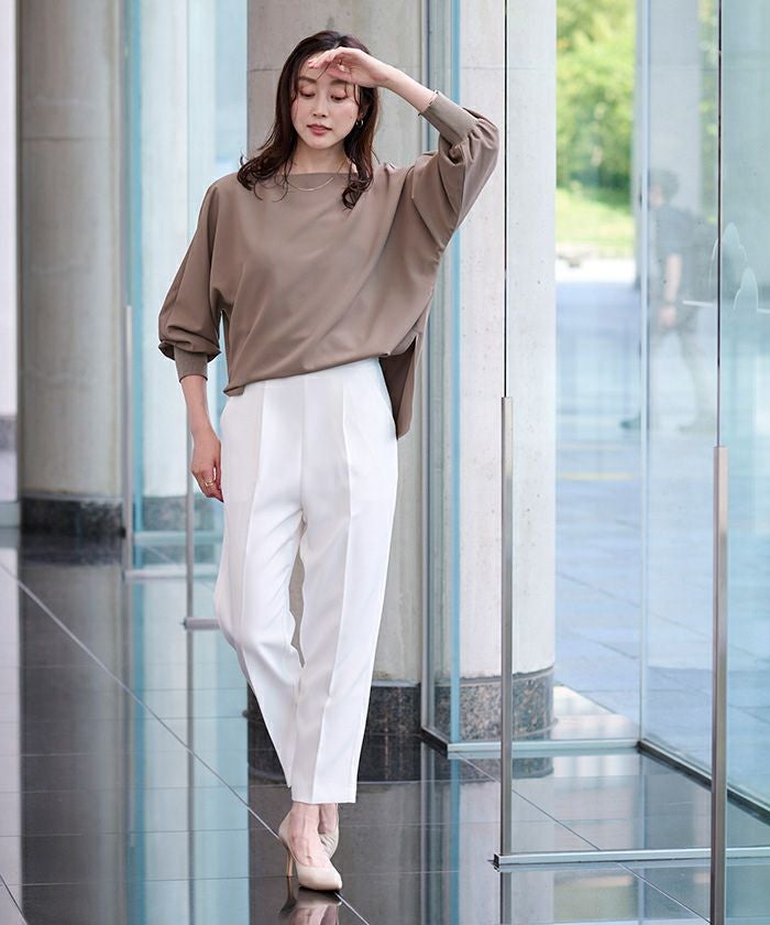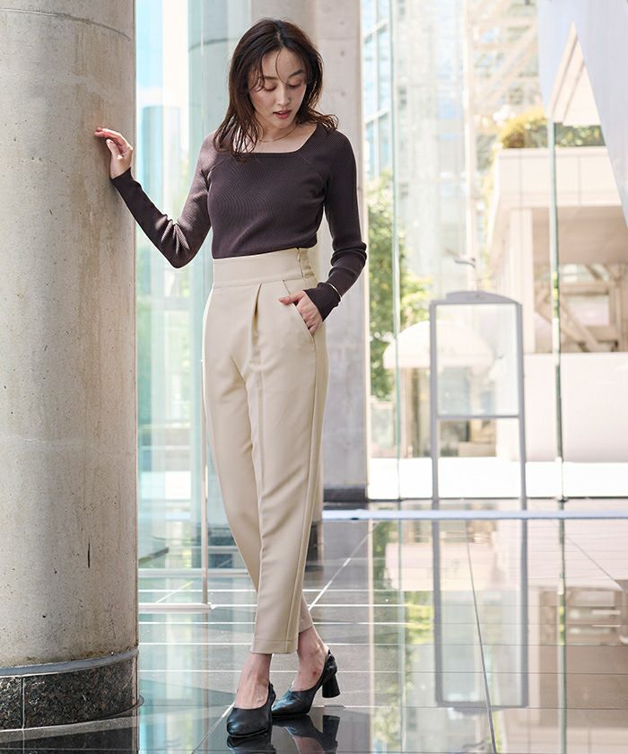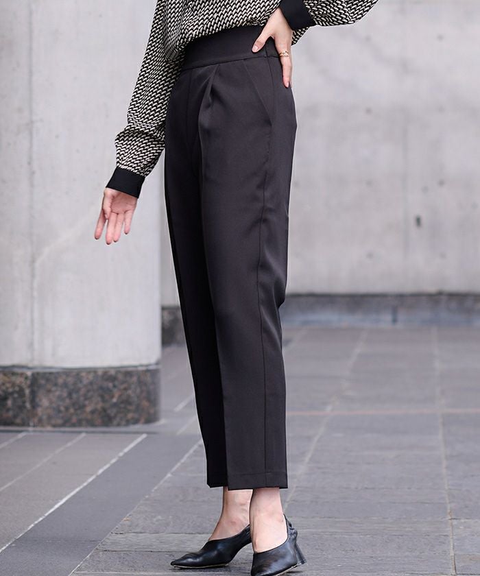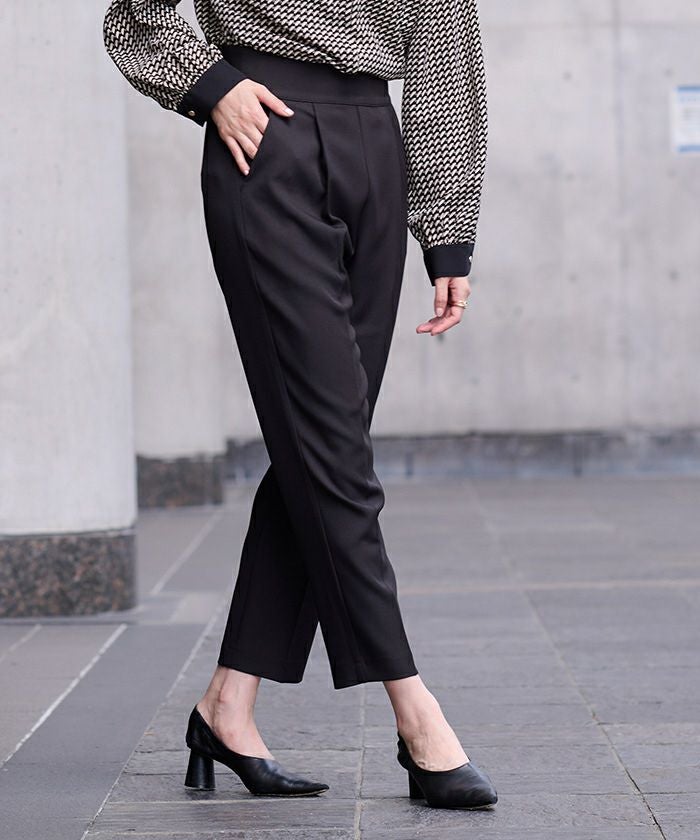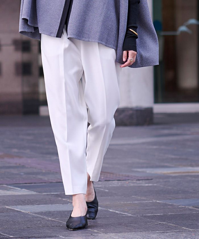 前ウエストにタックを施して立体感のあるテーパードパンツに仕上げました。