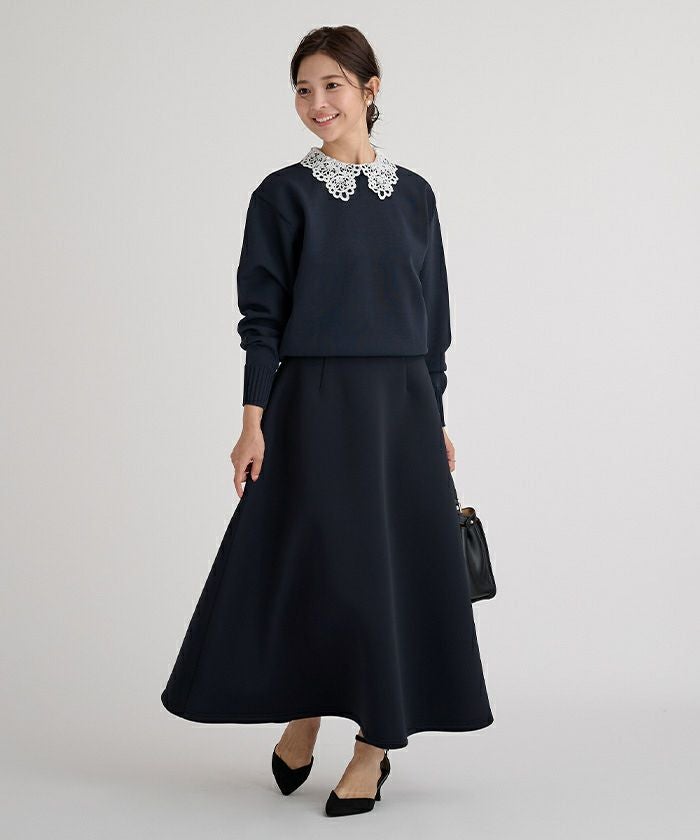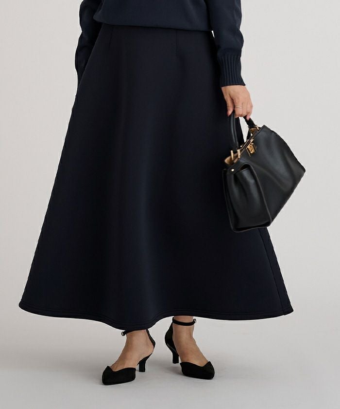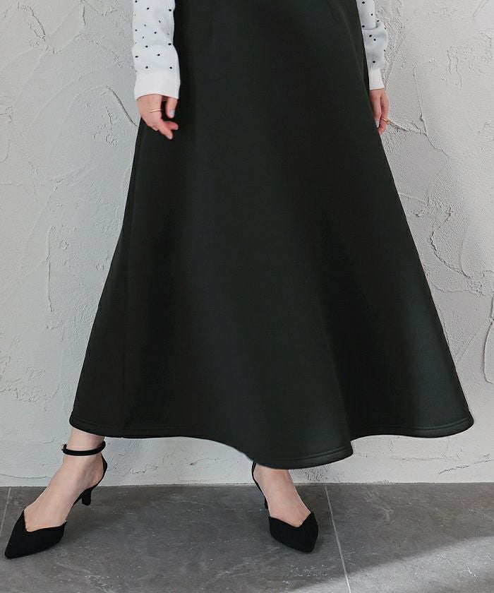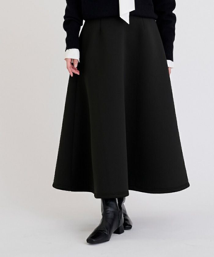 ダンボール素材を使用して構築的なフレアシルエットに仕上げました。