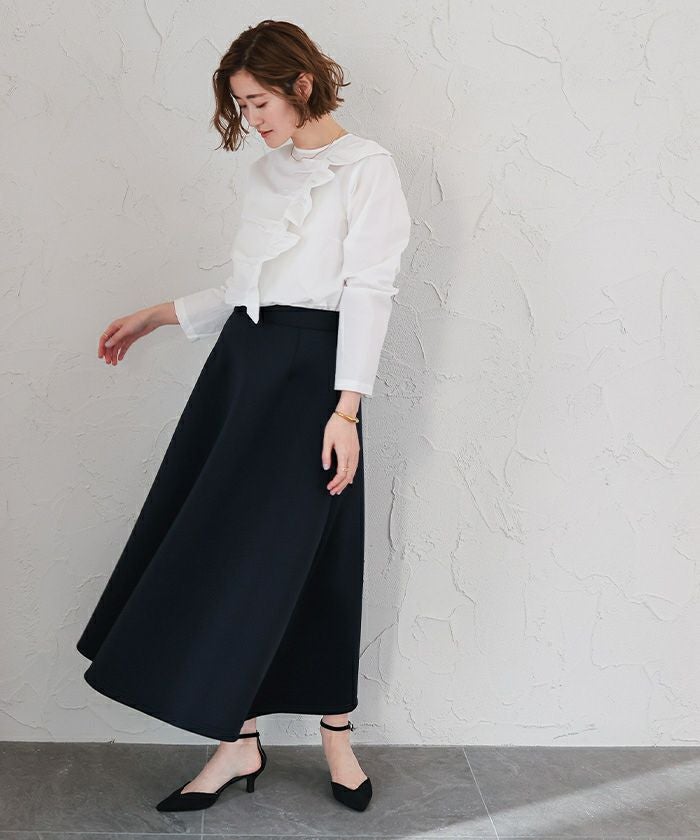 足首が綺麗見えするように長めのこだわりの丈感に。