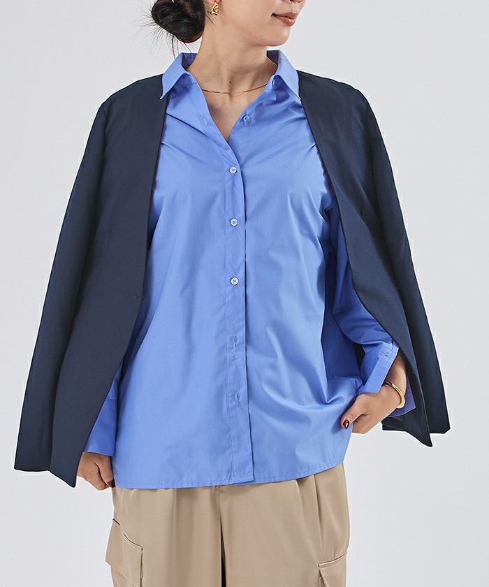 やや細身のシルエットでスタイルアップが叶います。 お家でお洗濯しても型崩れしないので汗ばむ時期でも清潔に着れました。