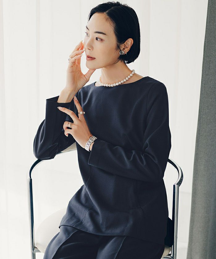 ボートネックが上品さと女性らしさを兼ね備えた1枚
