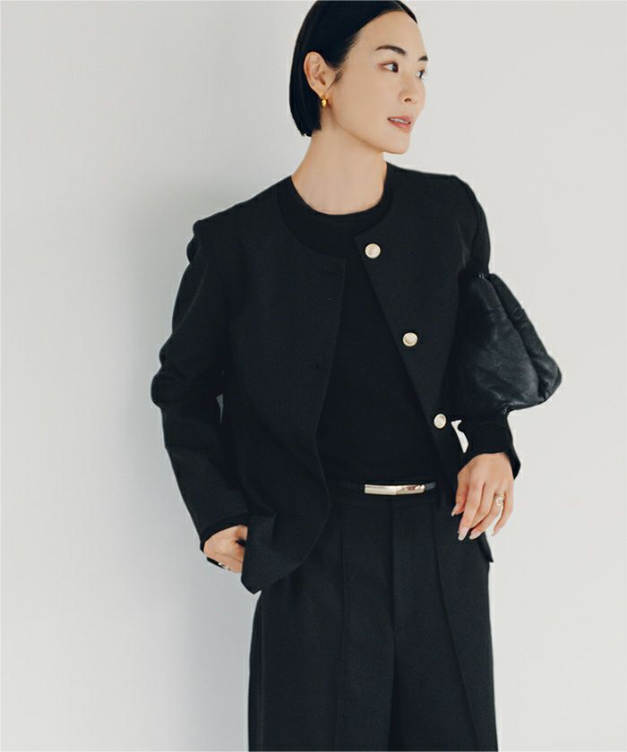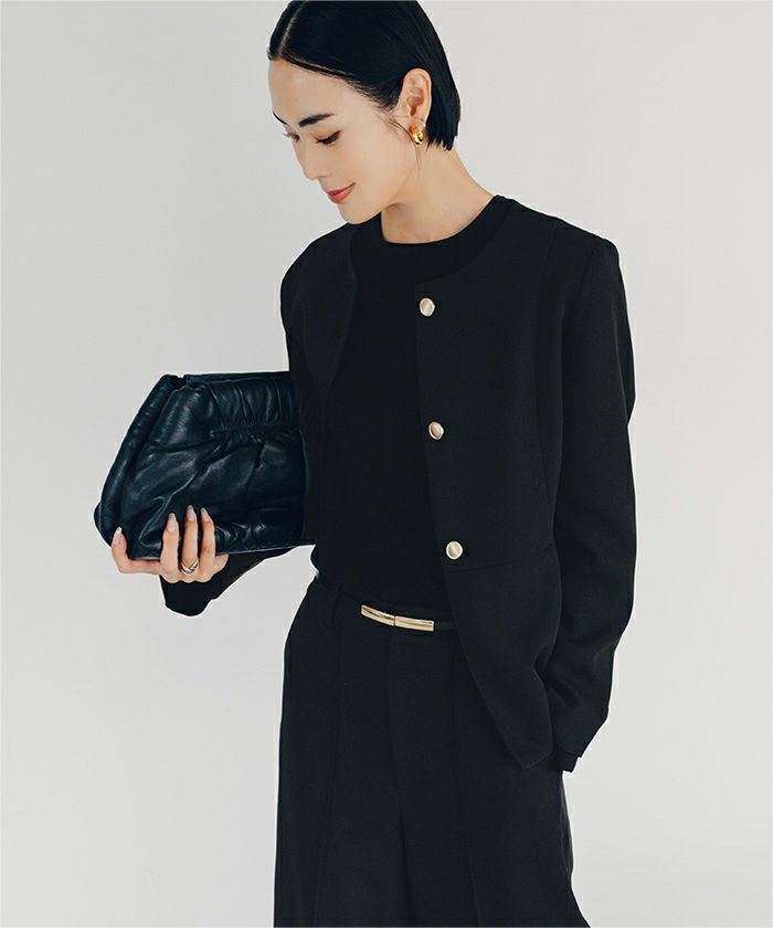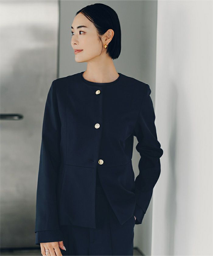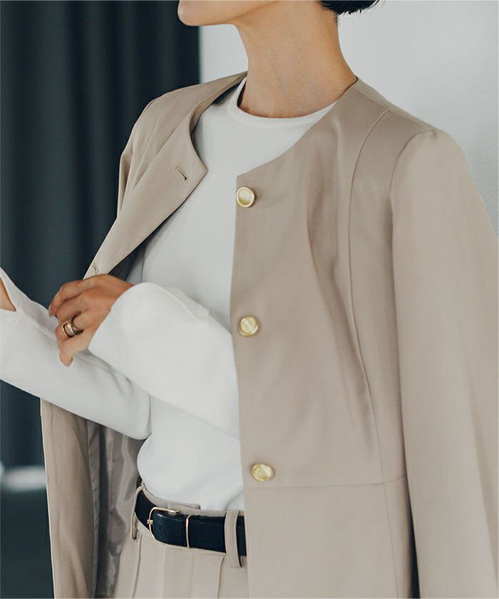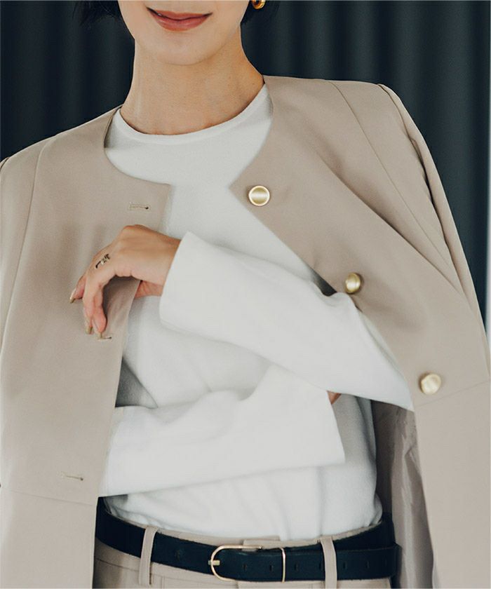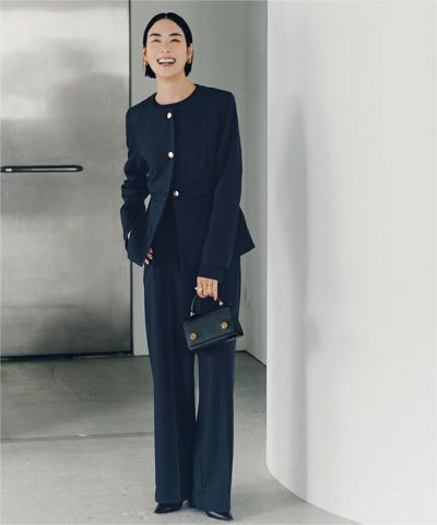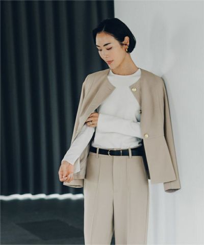 同素材シリーズのブラウスやジャケットと合わせてセットアップで着用して頂くのもおすすめです。
