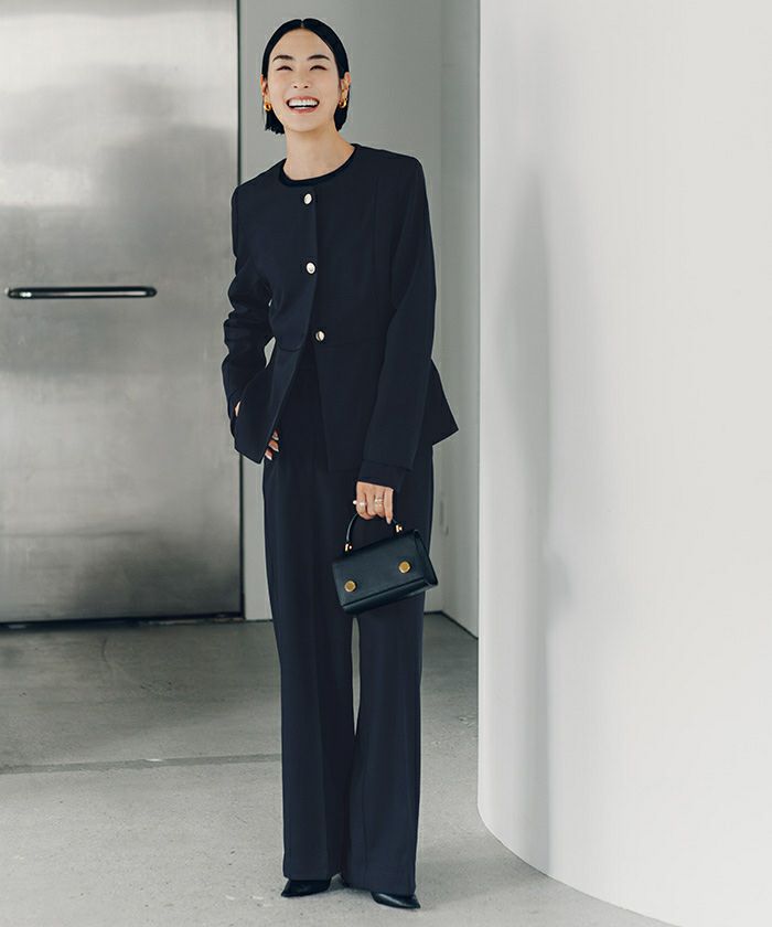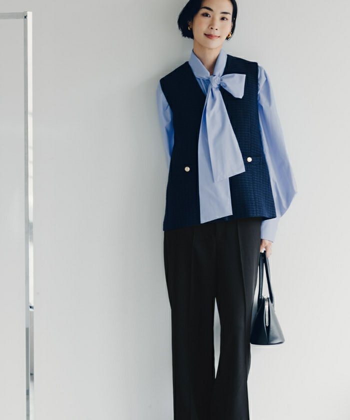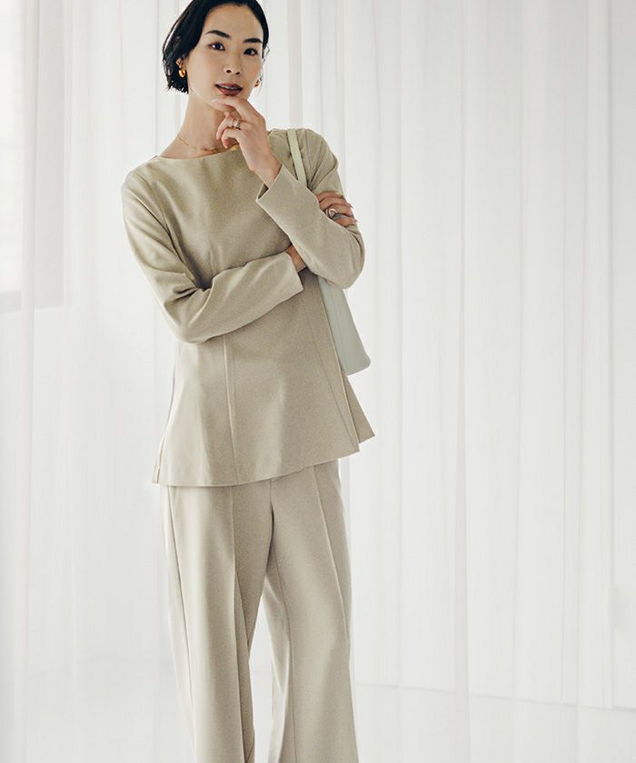 同素材シリーズのブラウスやジャケットと合わせてセットアップで着用して頂くのもおすすめです。
