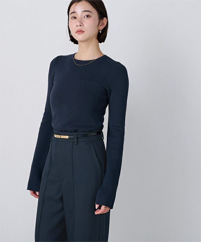 袖スリットクルーネックニット