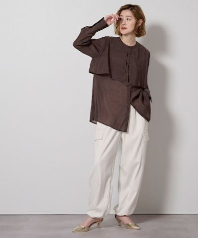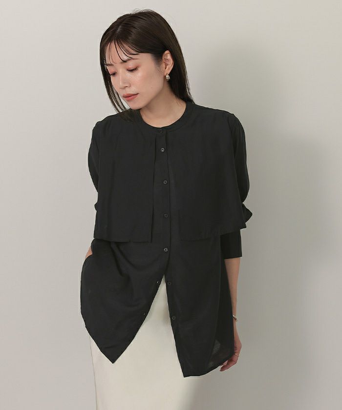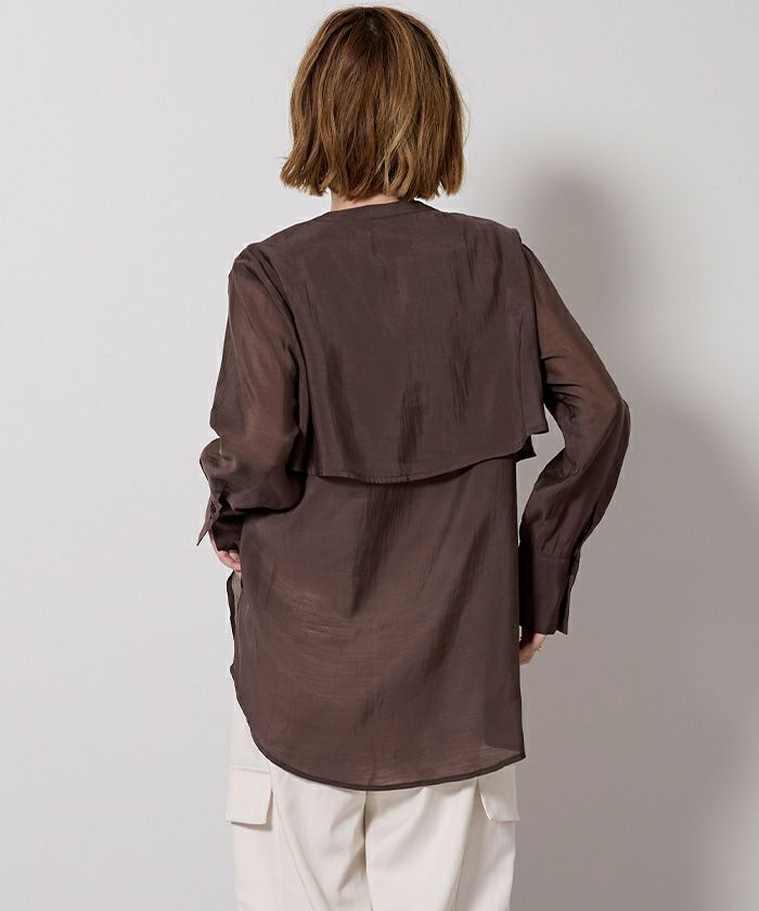 シアー感が女性らしいバンドカラーシャツ。