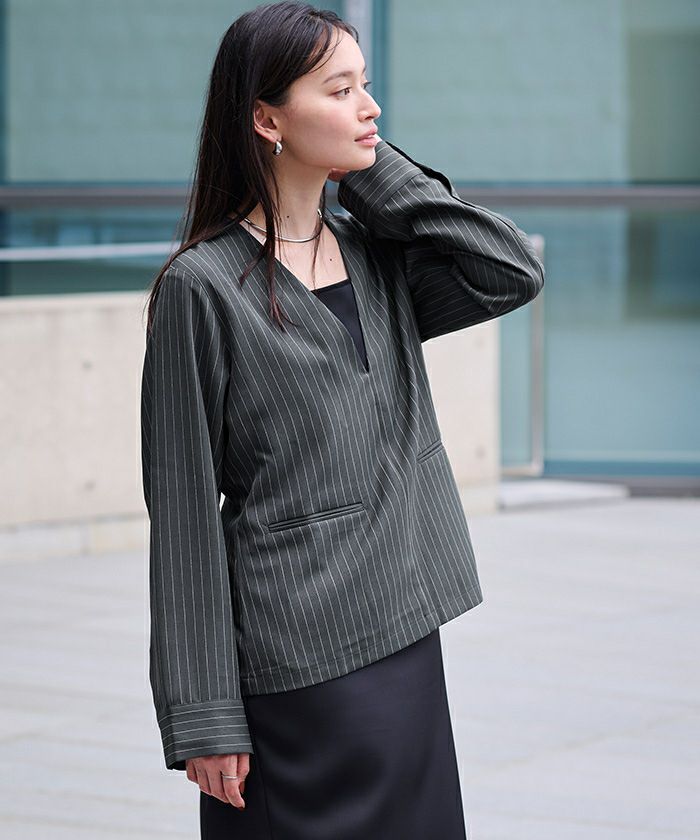 深めのVネックデザインで抜け感が出る大人のブラウスです。