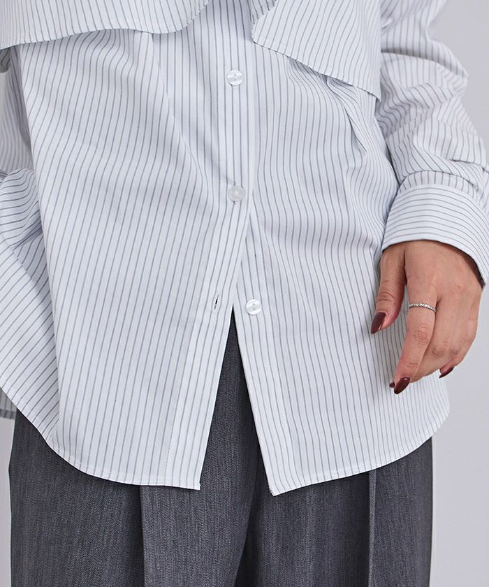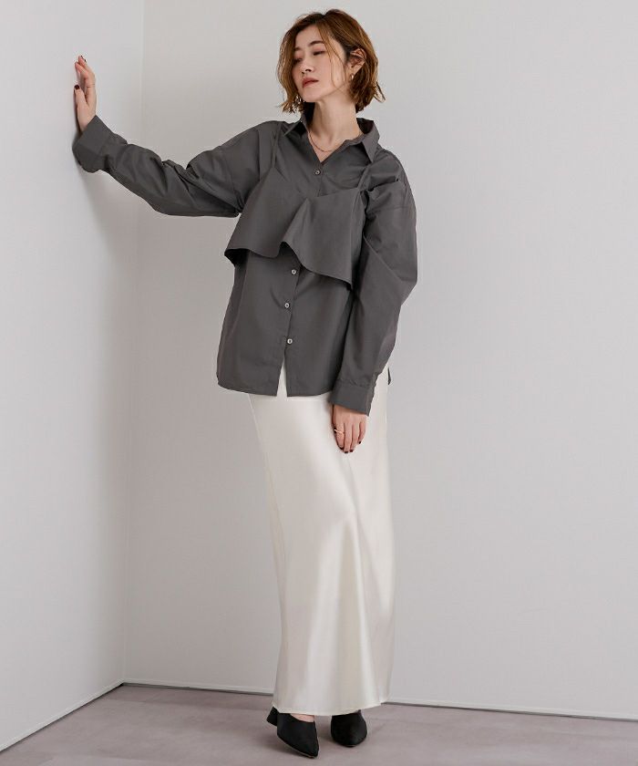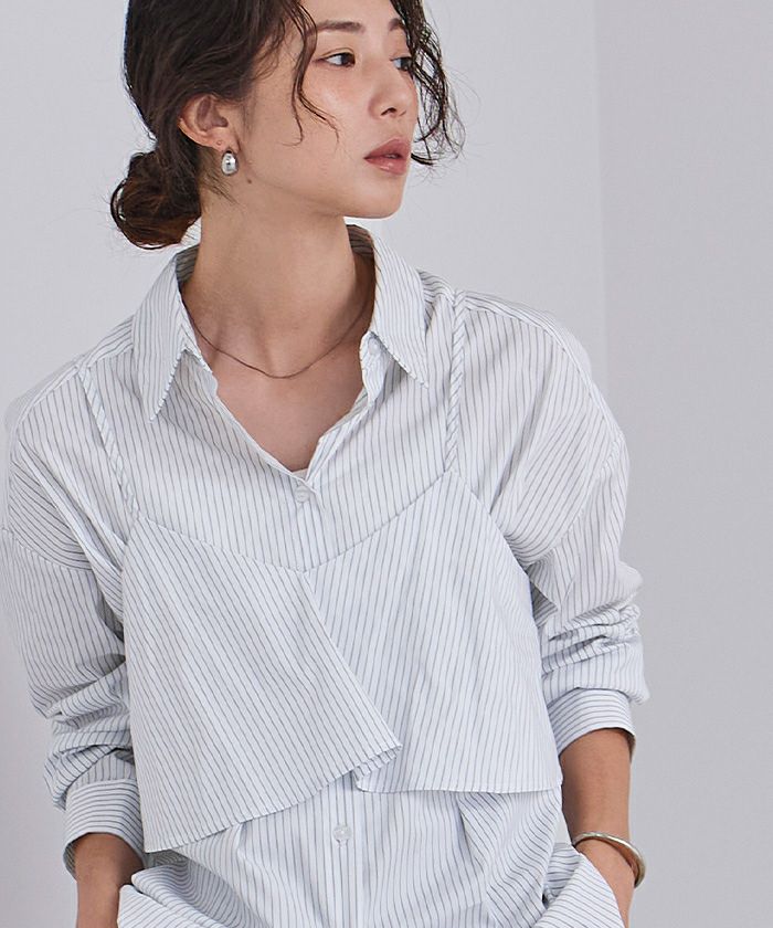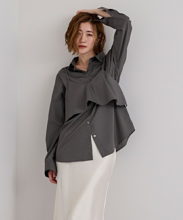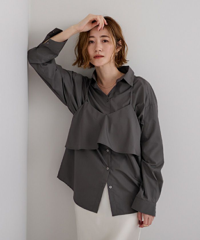 キャミなしでベーシックなシャツに キャミを付けるとインパクトのあるシャツに キャミを別でレイヤードして着ても可愛いし 3パターン着こなせるお得なシャツです