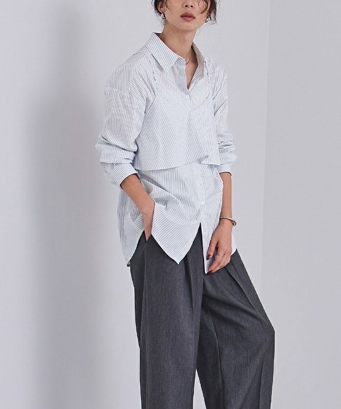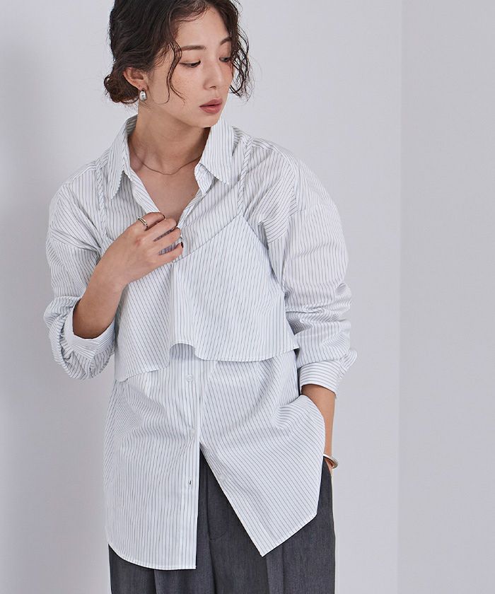 レイヤードが今年らしい装いを完成させるキャミ付きシャツ