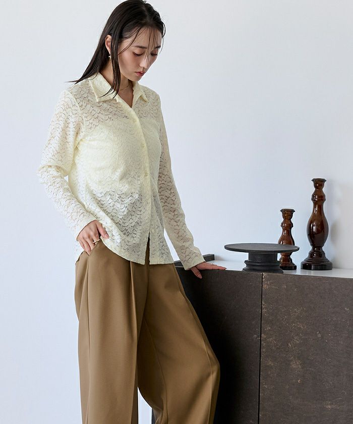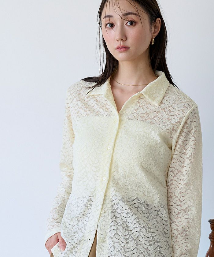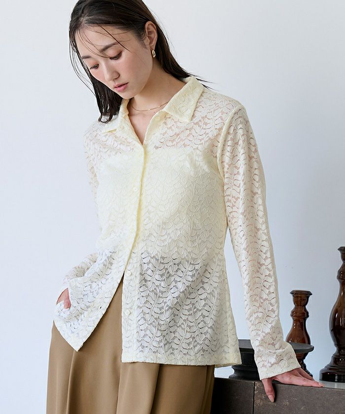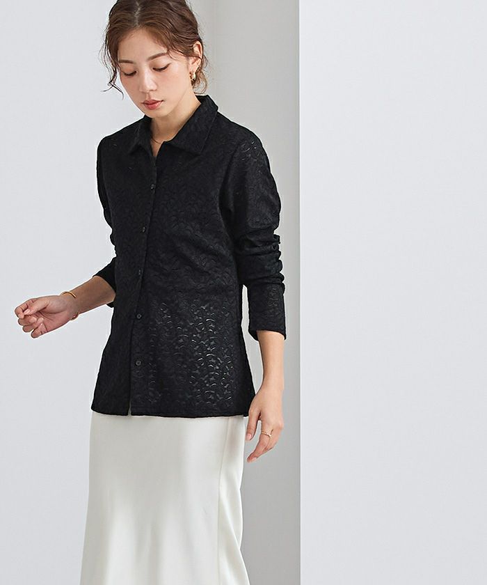 レース素材で仕立てたポロシャツ。
