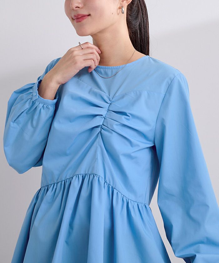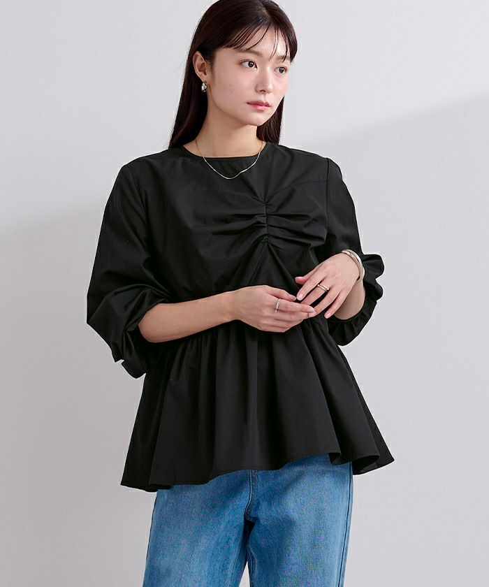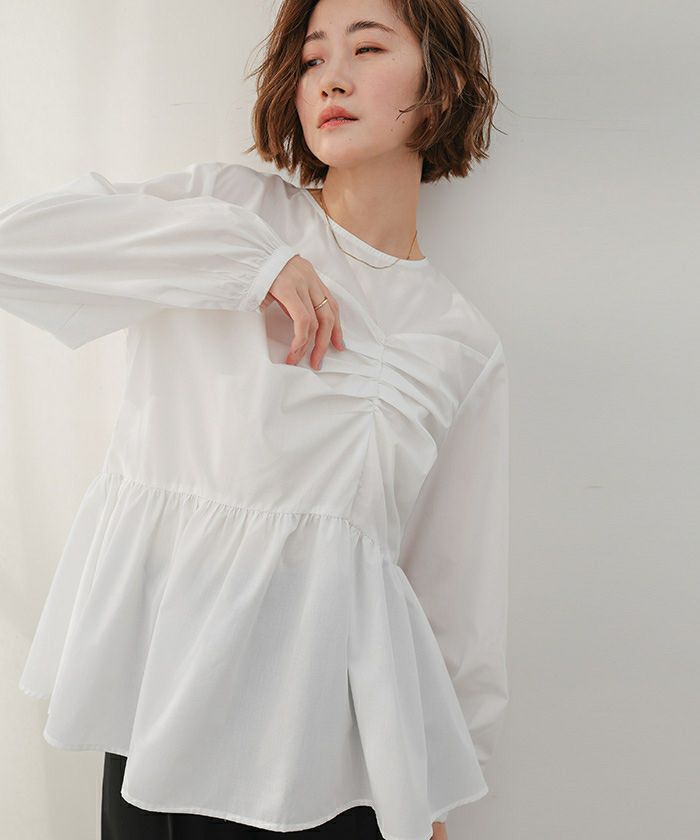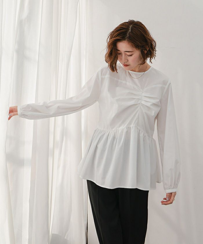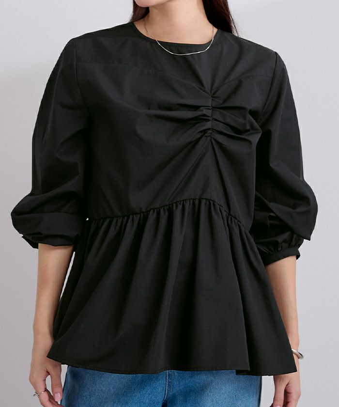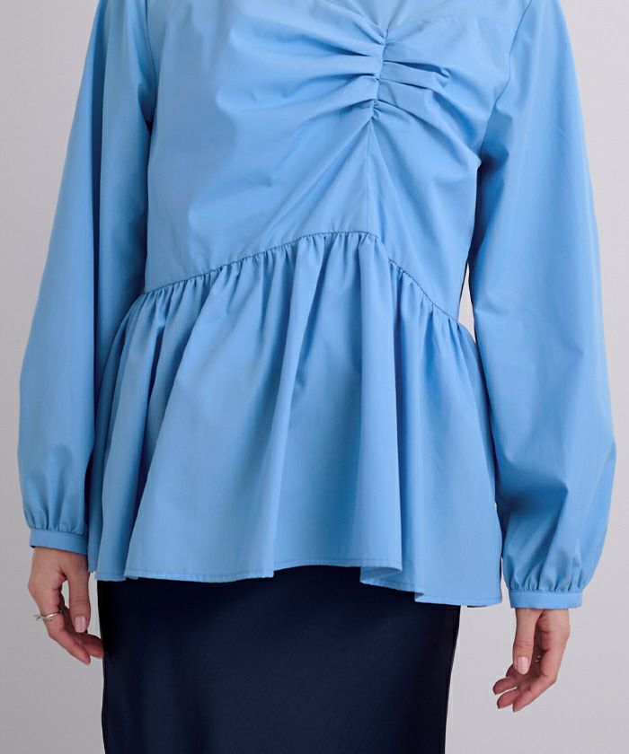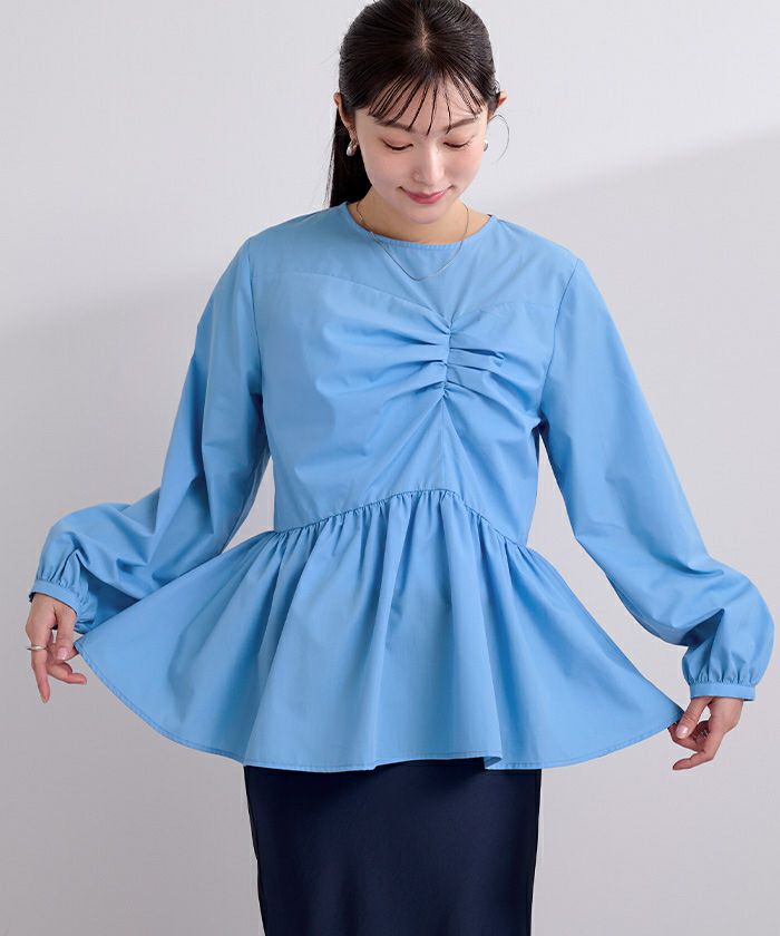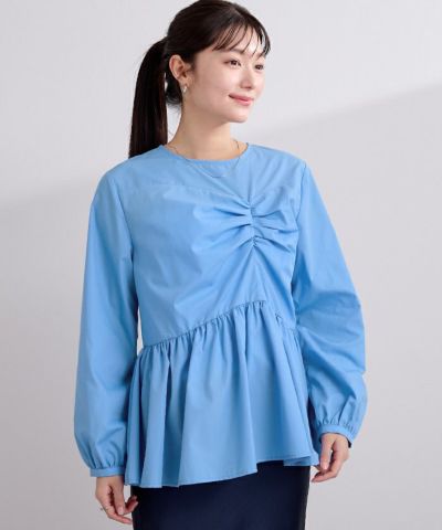 フロントの立体的なデザインが目を惹くペプラムブラウス。